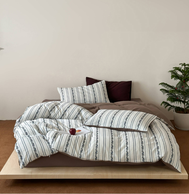 (总)玛奇朵 2025秋冬新品韩国色织A类三层皱皱纱系列四件套,山屿,时序,巷往