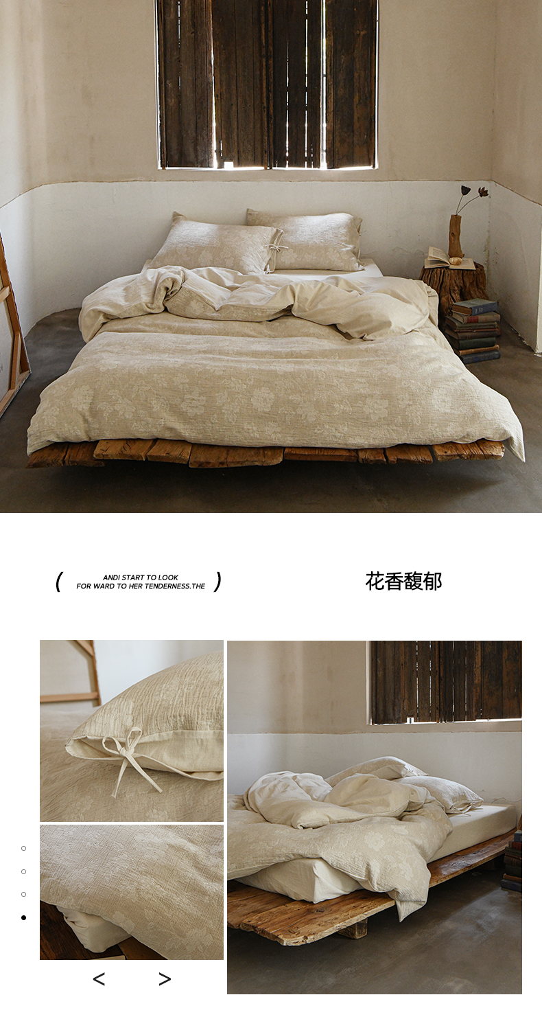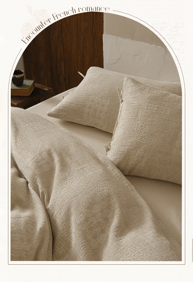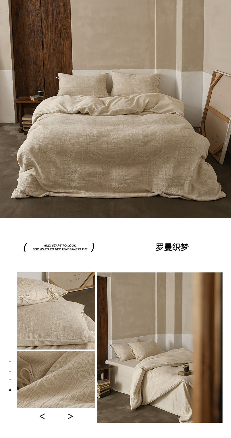 商品名称:玛奇朵 2025新款色织棉麻双层皱纱四件套 罗曼织梦