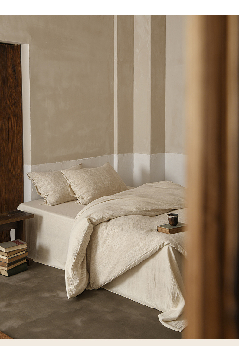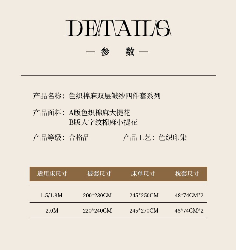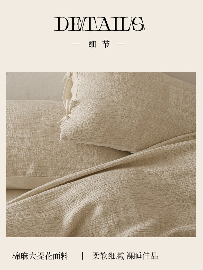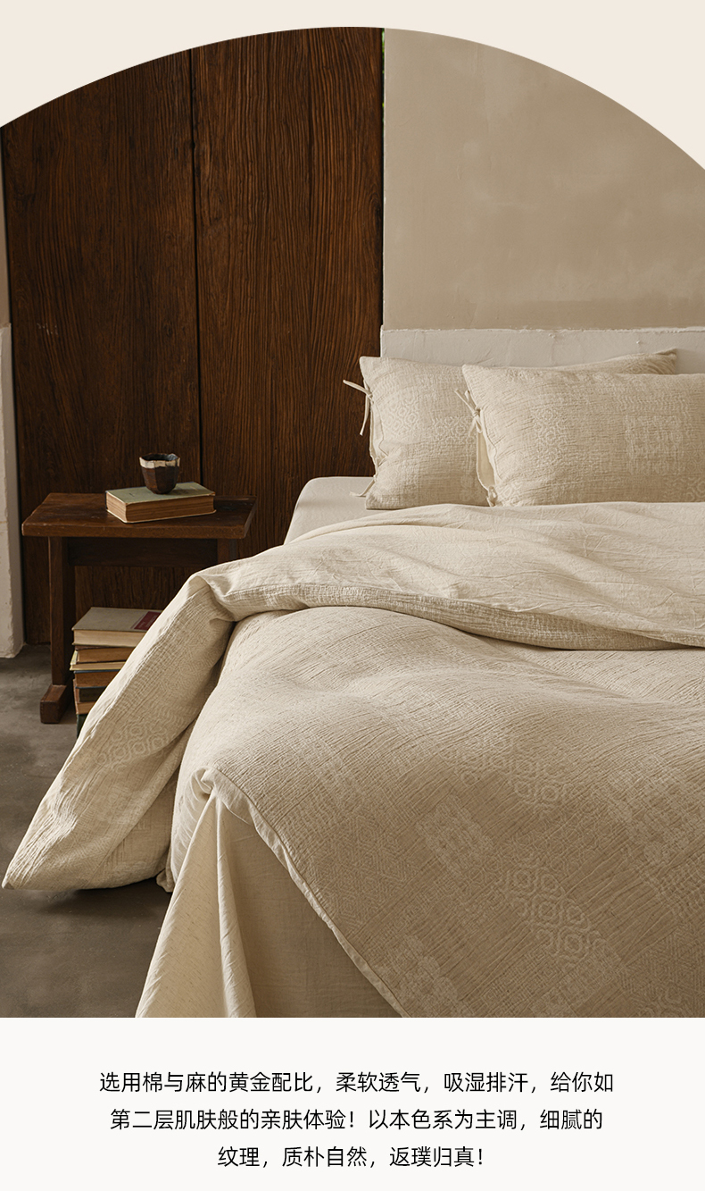 商品名称:玛奇朵 2025新款色织棉麻双层皱纱四件套 罗曼织梦