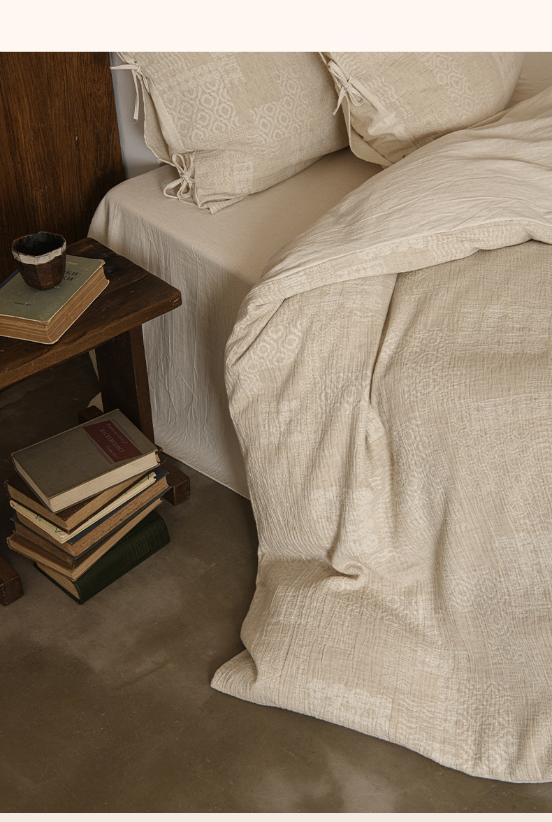 玛奇朵 2025新款色织棉麻双层皱纱四件套 罗曼织梦