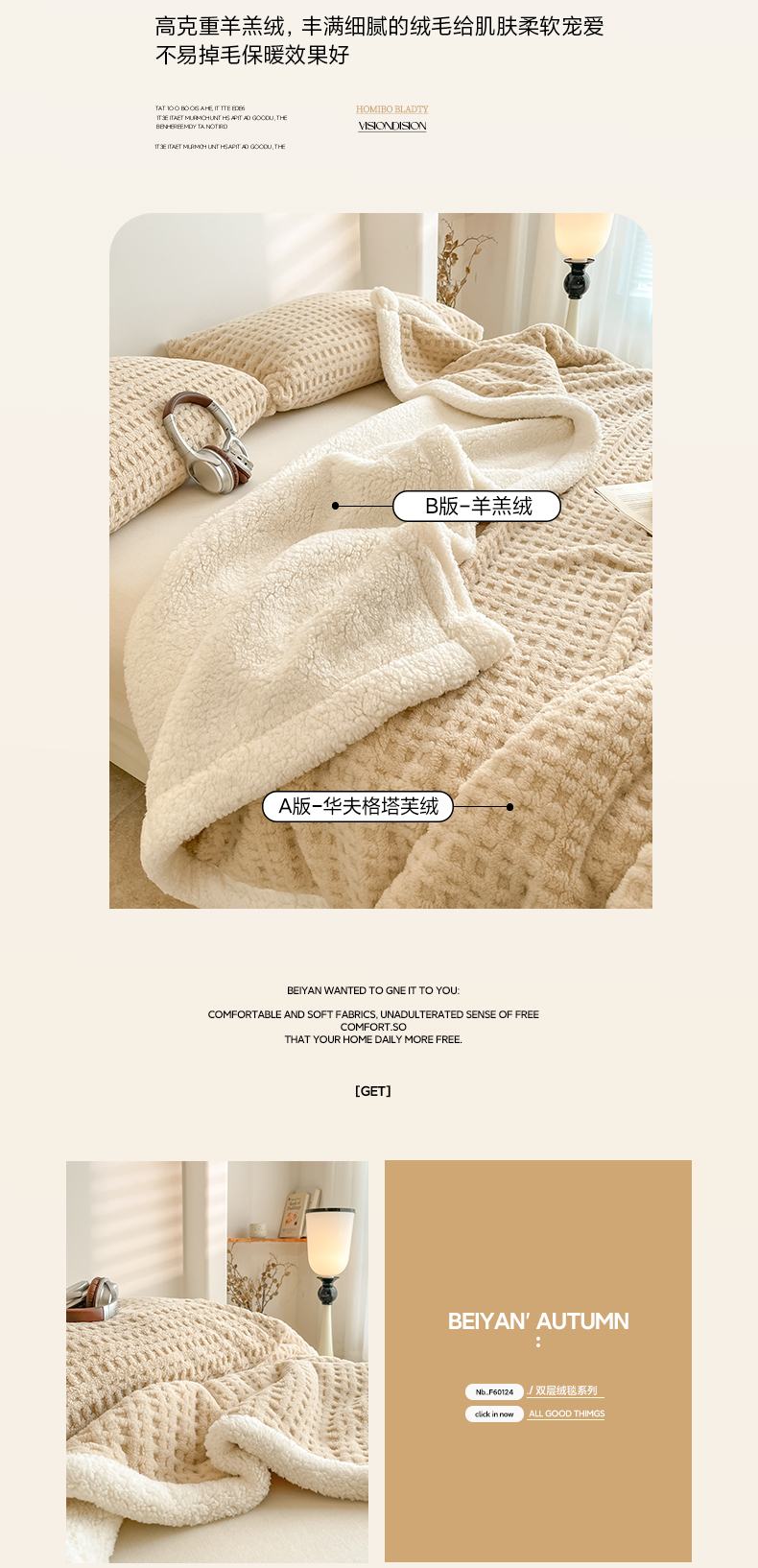 欧邦 2025新款华夫格双层毯盖毯毯子-场景1 华夫格-浅粉