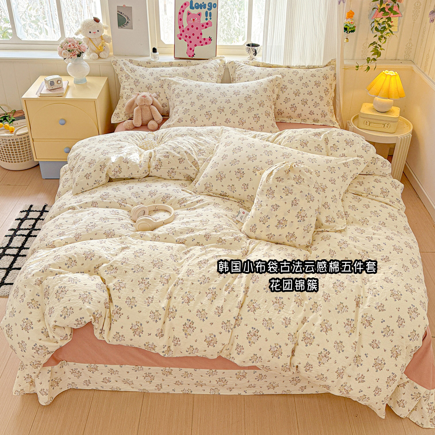 商品名称:梦莱斯 2025新款韩国小布袋古法云感棉四件套 花团锦簇
