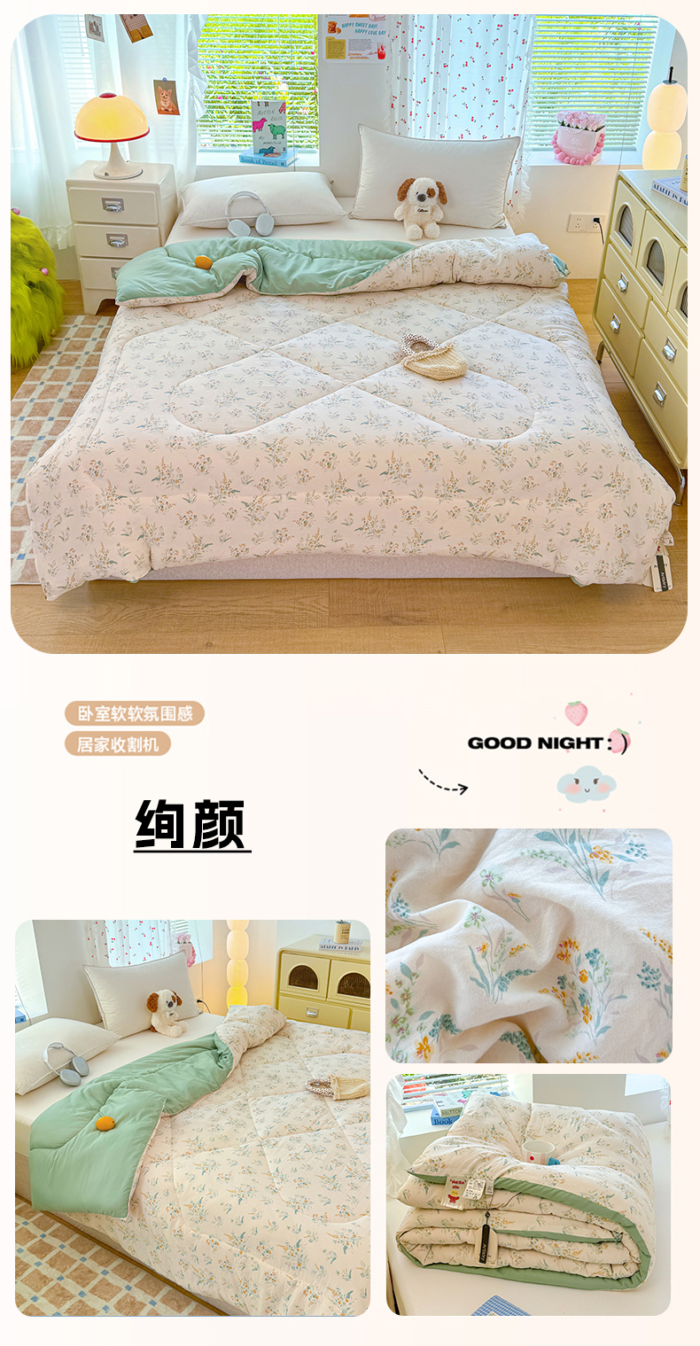 (总)弗苓家纺 2025新款A类云感有氧双层纱冬被被子被芯,白茶蓝,草莓格,春风里,呆萌西高地,豆蔻,格子奶咖,花园兔,拉布布,绿象泡泡,米奇,米亚,苹果栖时,绒绒乐园,舒芙蕾,疏影之星,条纹小象,小新,枕梦星月,紫爱心,紫苏,组合图仅供展示不可下单