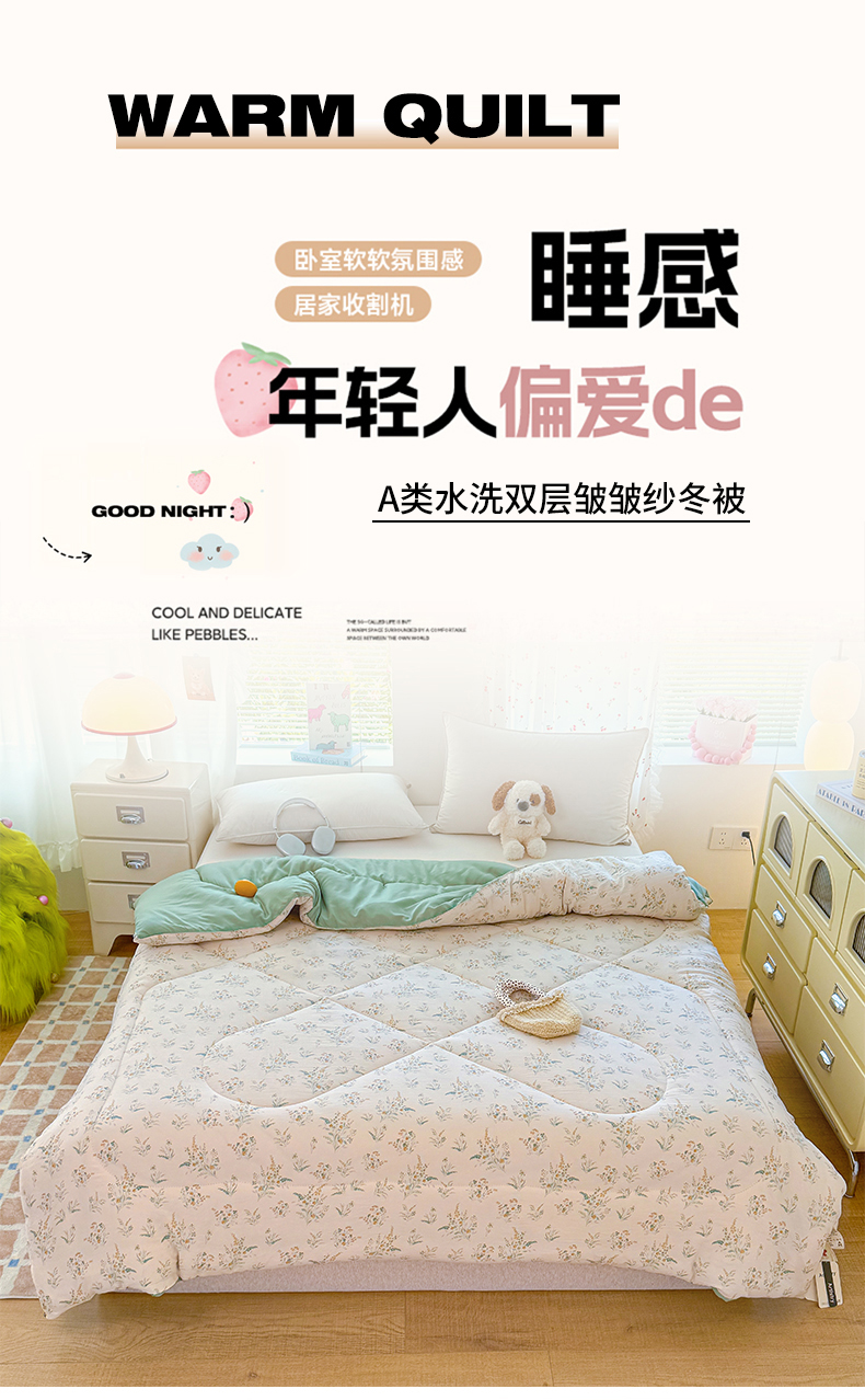 • 91家纺网 家纺一手货源 找家纺 弗苓家纺 2025新款糯叽叽ins风双层纱水洗棉冬被被子被芯 初恋
