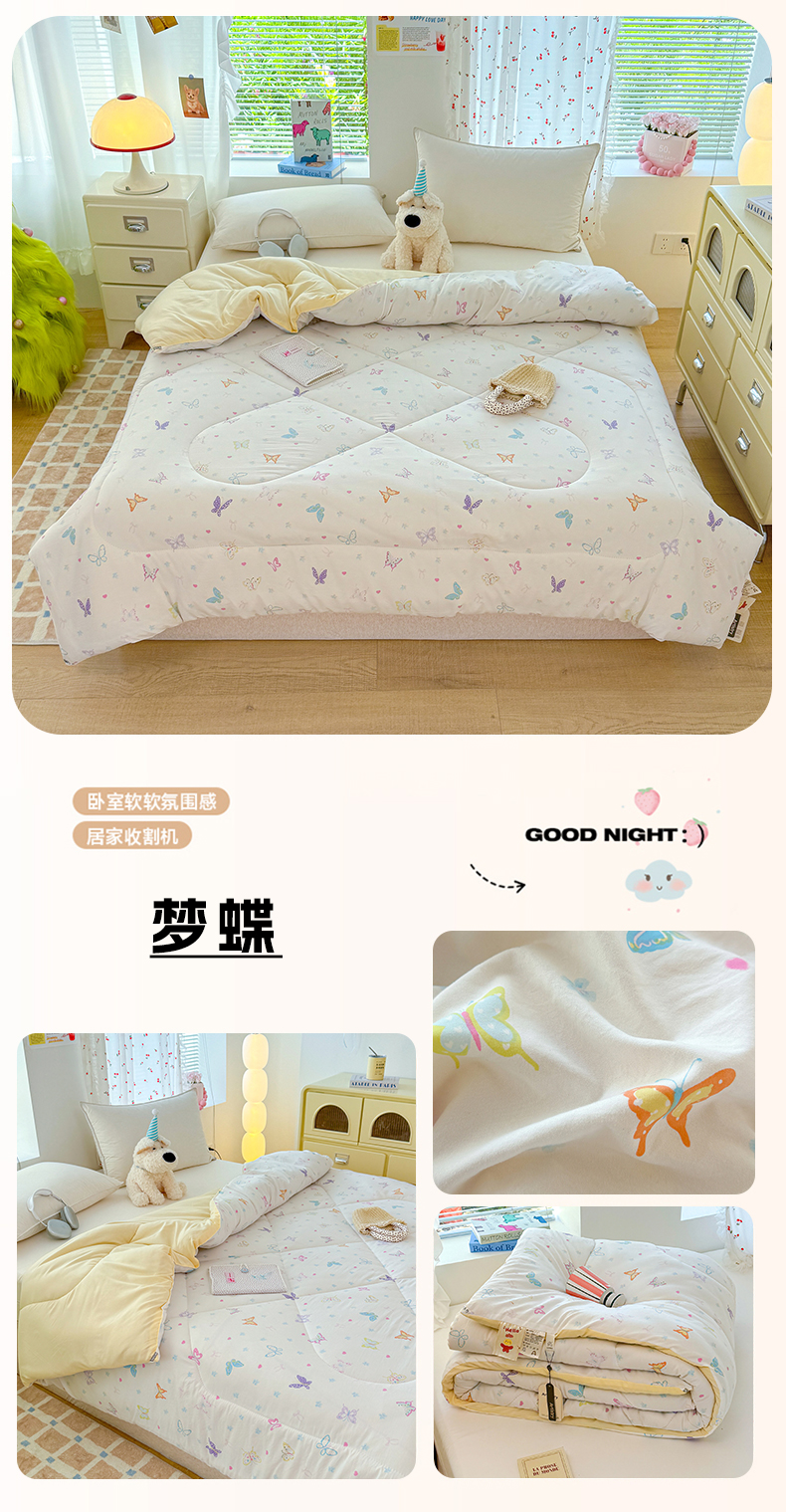 • 91家纺网 家纺一手货源 找家纺 (总)弗苓家纺 2025新款糯叽叽ins风双层纱水洗棉冬被被子被芯,绚颜,汪汪队,蜡笔小新,春晓,垂耳免,樱桃,粉黛,安妮兔,西高地,初恋,海盐-蓝,海盐-米,米奇妙妙,梦蝶,郁金香,组合图仅供参考不可下单