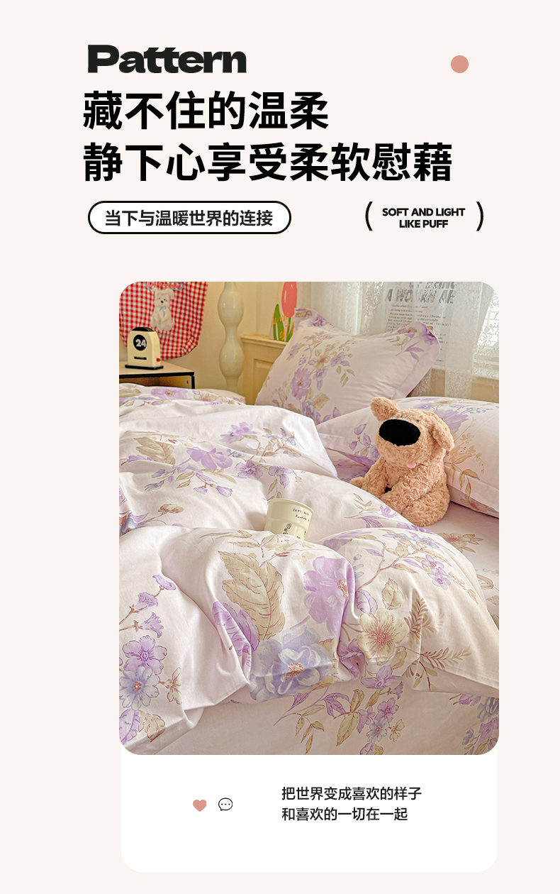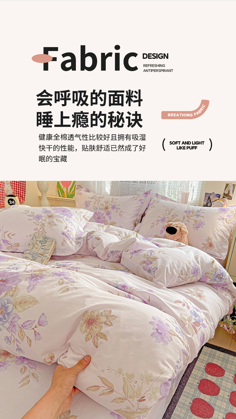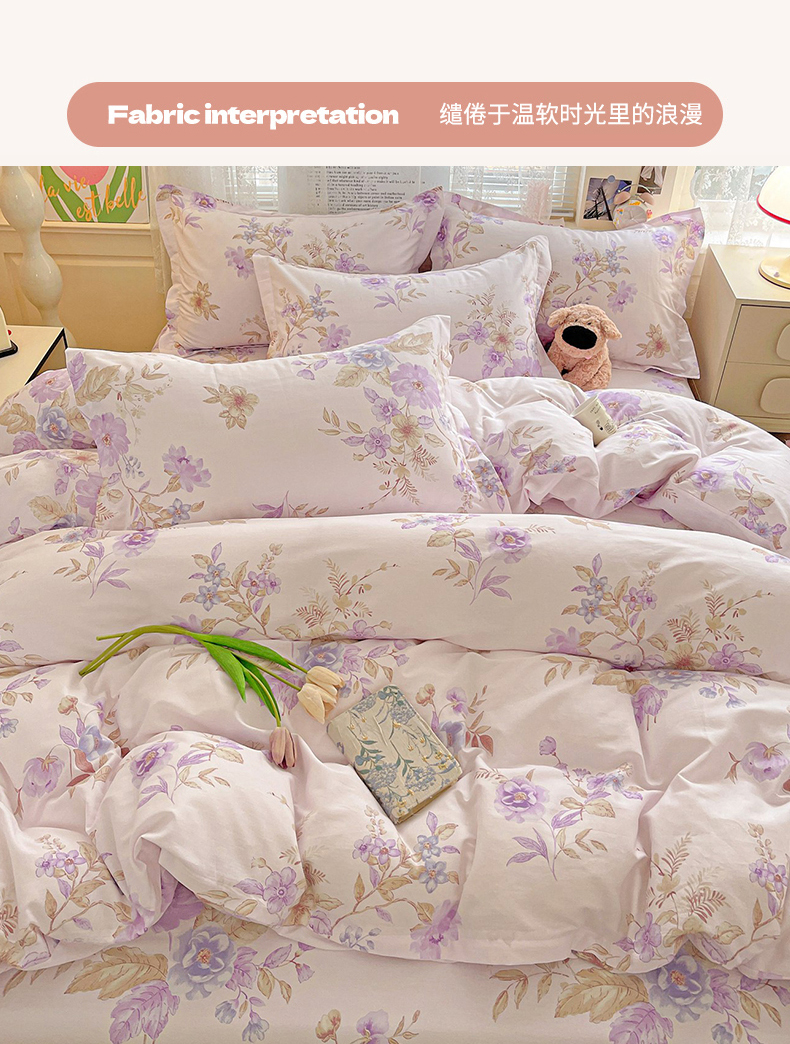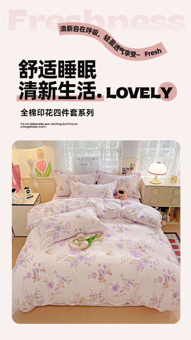 当前位置: 91家纺网 > 商品网购 > 床品套件 > 四件套 > 全棉普通四件套 > 文黛家居 2025新款全棉喷气印花全棉纯棉印花系列四件套 花媚柔情