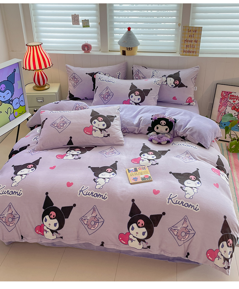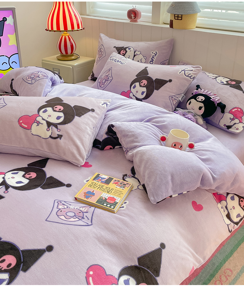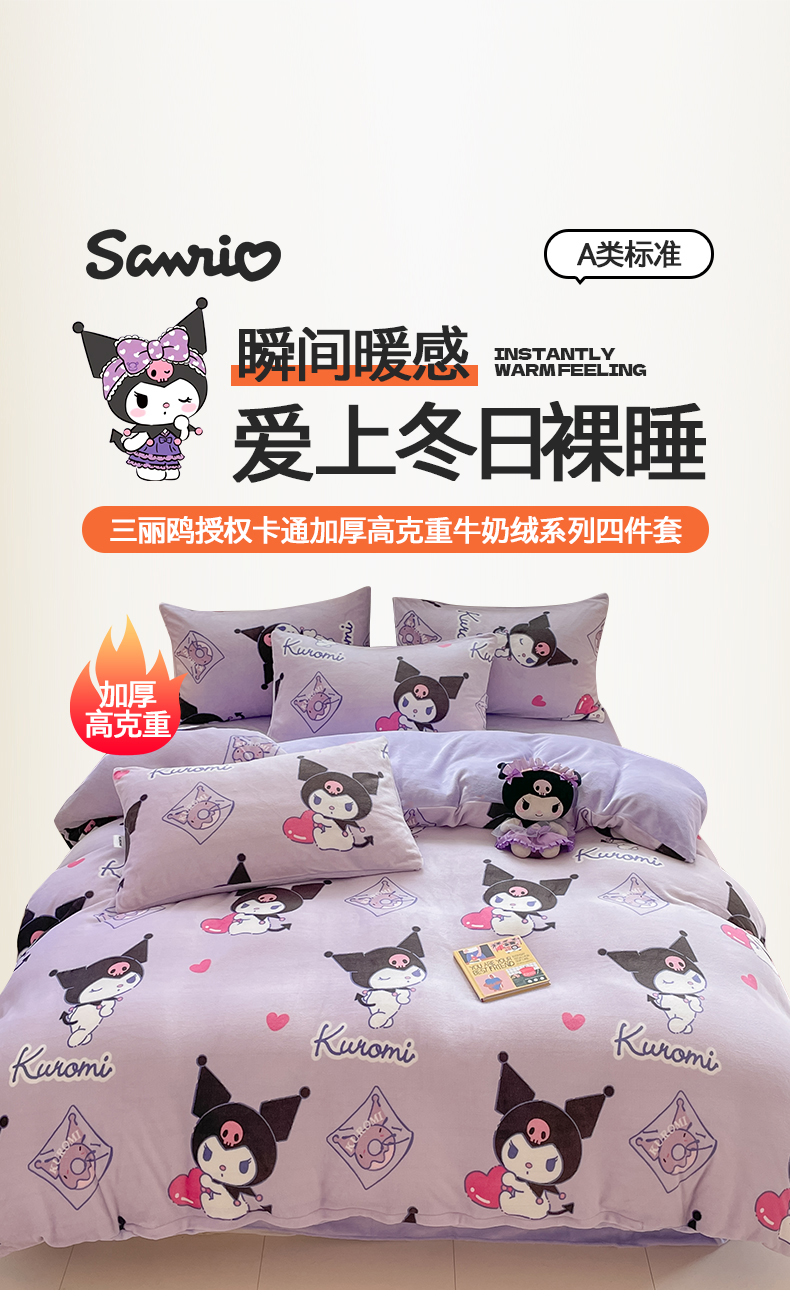 当前位置: 91家纺网 > 商品网购 > 床品套件 > 四件套 > 牛奶绒四件套 > 桃子家居 2025新款A类正版三丽鸥授权卡通加厚高克重牛奶绒系列四件套 绒三丽鸥-梦幻库洛米