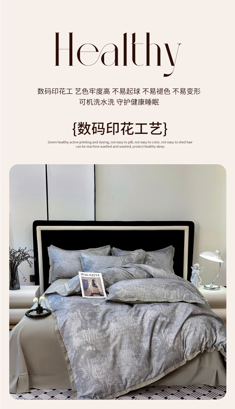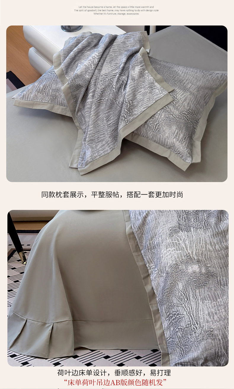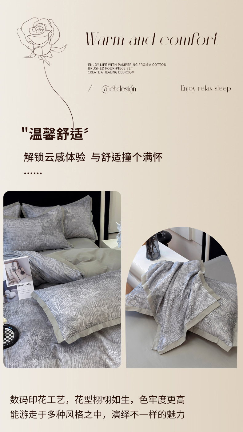 当前位置: 91家纺网 > 商品网购 > 床品套件 > 四件套 > 全棉普通四件套 > 未来家居 2025新款秋冬全棉加厚磨毛纯色印花缺角工艺系列高端礼盒包装四件套 龙葵-灰