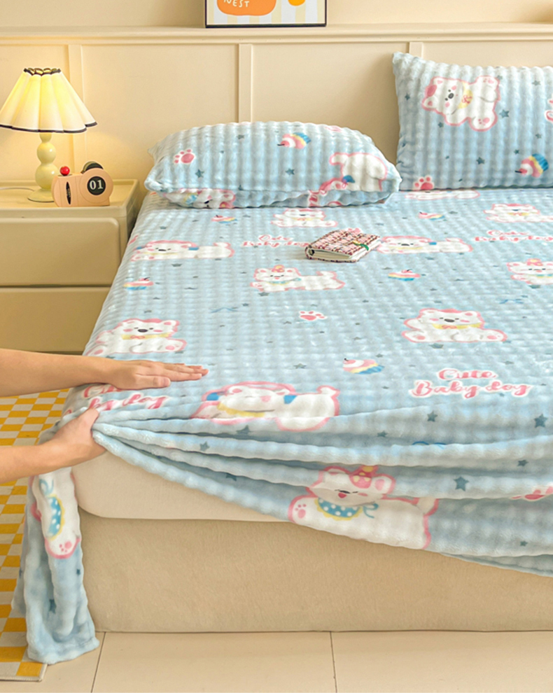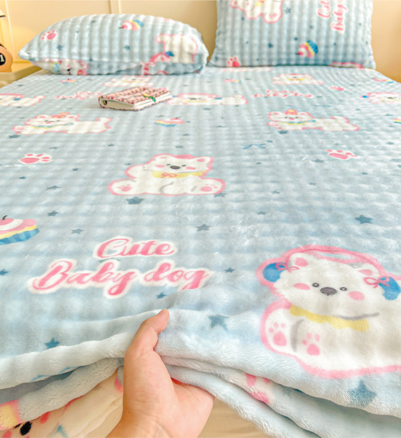 • 91家纺网 家纺一手货源 找家纺 爱屋及屋 2025新款牛奶泡泡绒印花单床单 床单单件 可爱萌狗