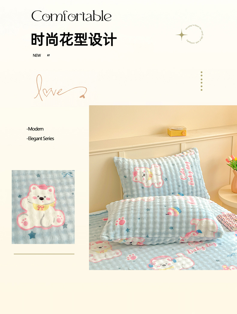 • 91家纺网 家纺一手货源 找家纺 (总)爱屋及屋 2025新款牛奶绒印花床单,爱心樱桃,大耳狗狗,蛋糕小熊,可爱猫,蓝格萌狗,萌宠派对,山茶小兔,碎花小兔,甜筒乐蒂,童话格梦,相思蓝,小狗点点,樱桃小格