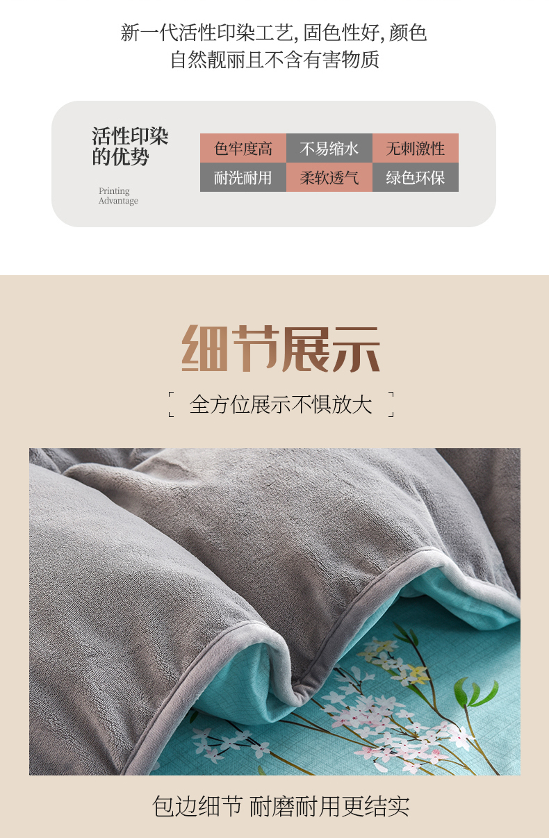 琪琪阁 2023新款A棉B绒棉加绒牛奶绒四件套单被套 宁静生活,宁静生活