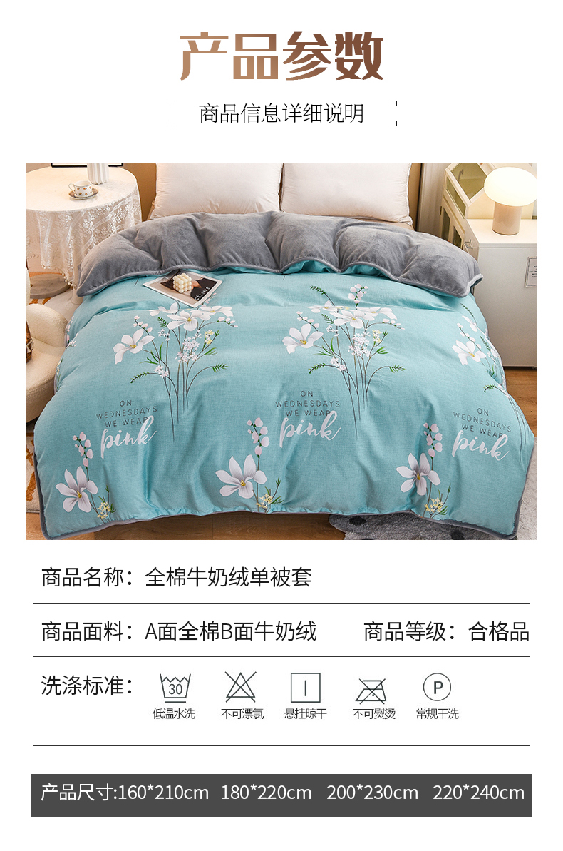 商品名称:琪琪阁家纺 2025秋冬新款全棉加牛奶绒单被套棉加绒被套 宁静生活