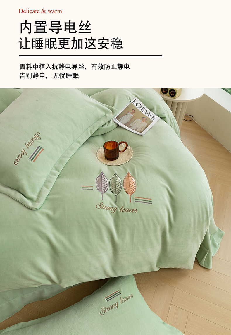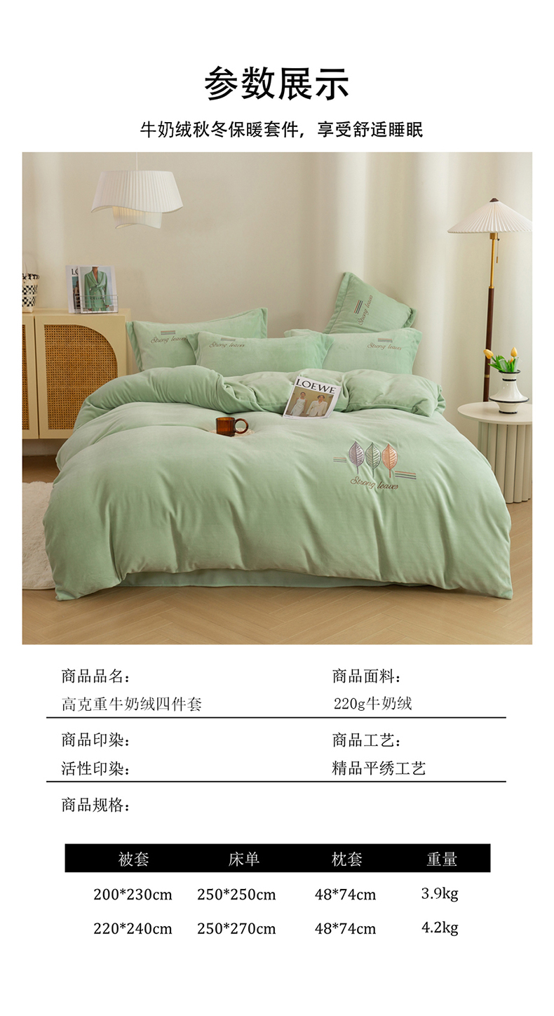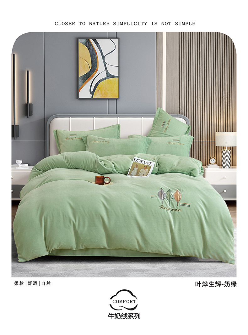 (总)绒博士 2025新款220克牛奶绒刺绣四件套--叶烨生辉系列,叶烨生辉-奶绿,叶烨生辉-宾利蓝,叶烨生辉-豆沙,叶烨生辉-芳菲紫,叶烨生辉-灰色,叶烨生辉-樱花粉