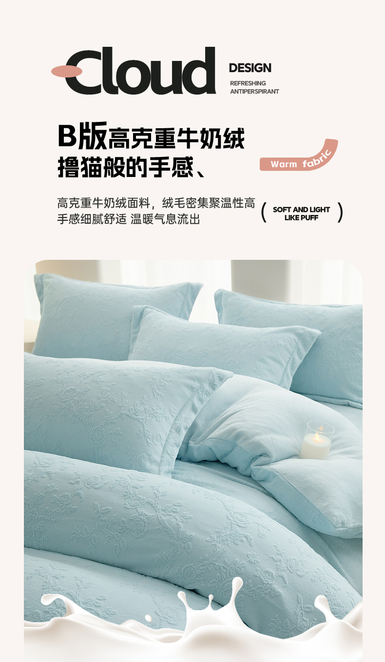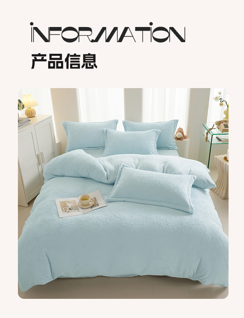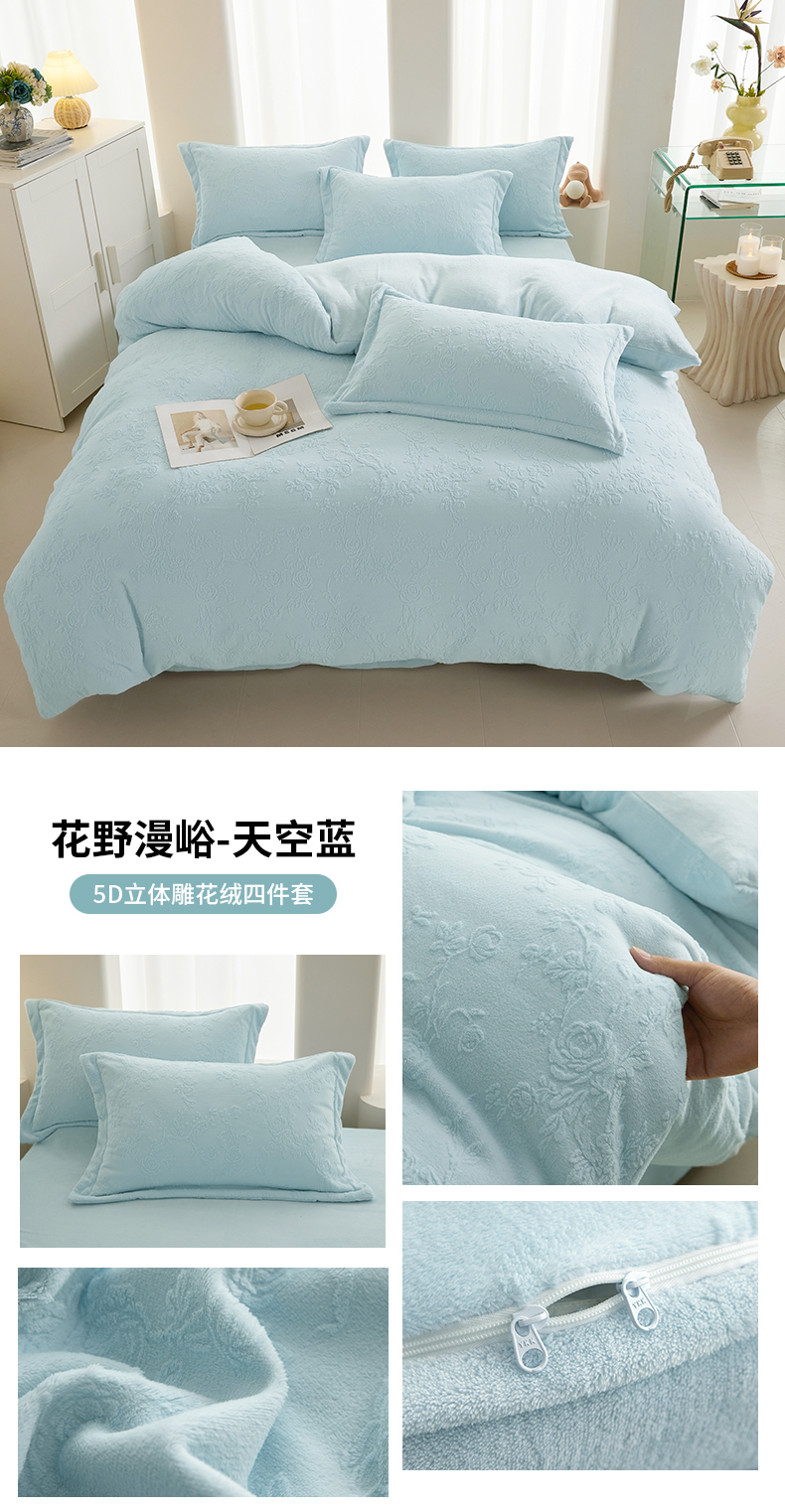 当前位置: 91家纺网 > 商品网购 > 床品套件 > 四件套 > 牛奶绒四件套 > 亿梵 2025秋冬新款A类全消光牛奶绒立体5D雕花绒四件套 花野漫峪-天空蓝
