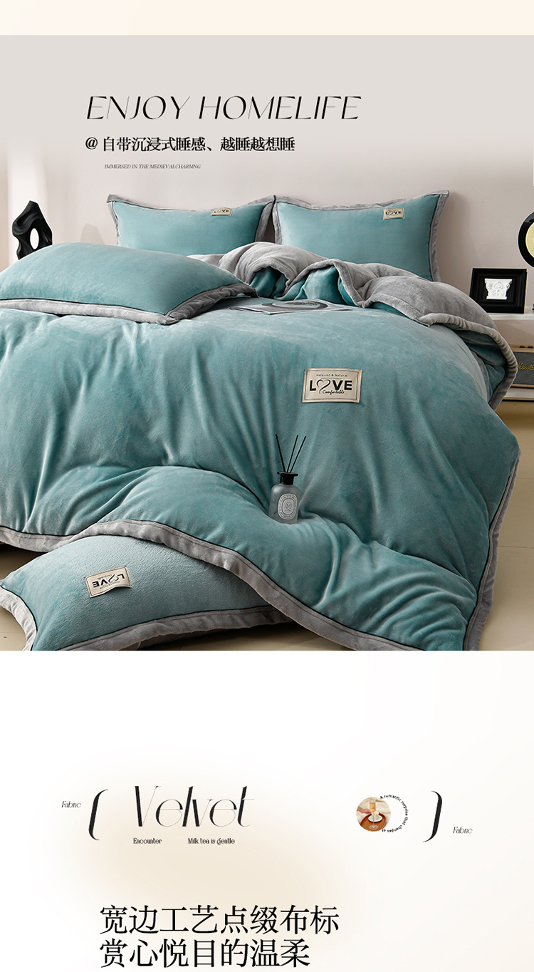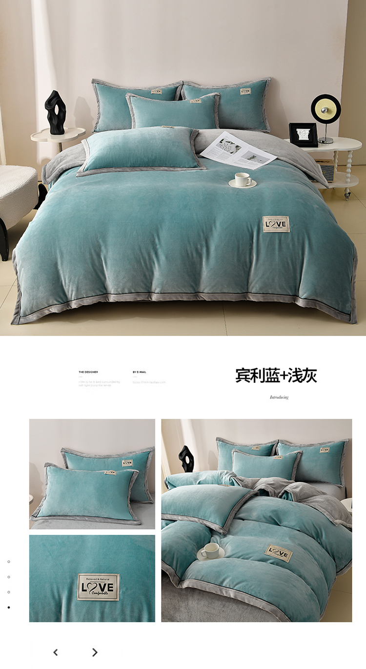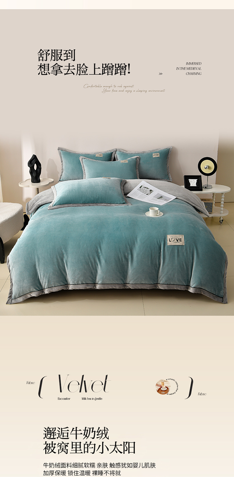 (总)馨梦缘-2025新款牛奶绒四件套纯色双拼法兰绒四件套,宾利蓝+浅灰,焦糖+杏色,大红+深灰,爵士蓝+深灰,米驼+深驼,牛油果绿+浅灰,浅豆沙+浅灰,浅灰+深灰,天空蓝+浅灰,香芋紫+浅灰