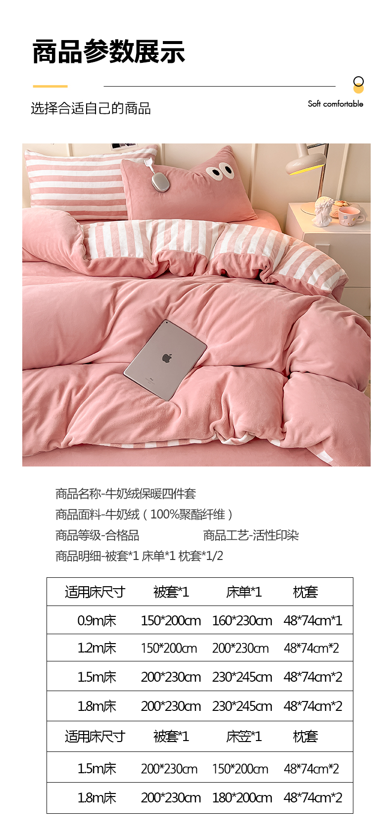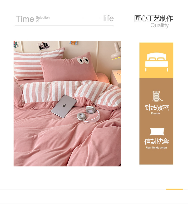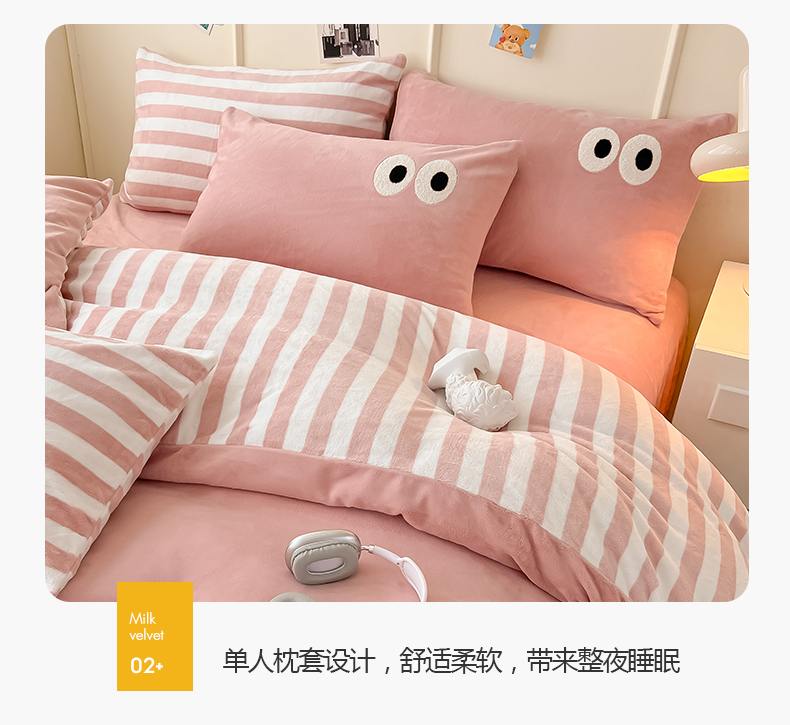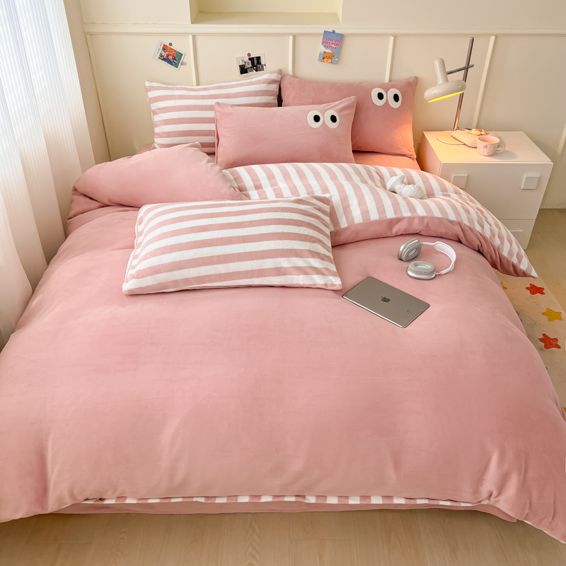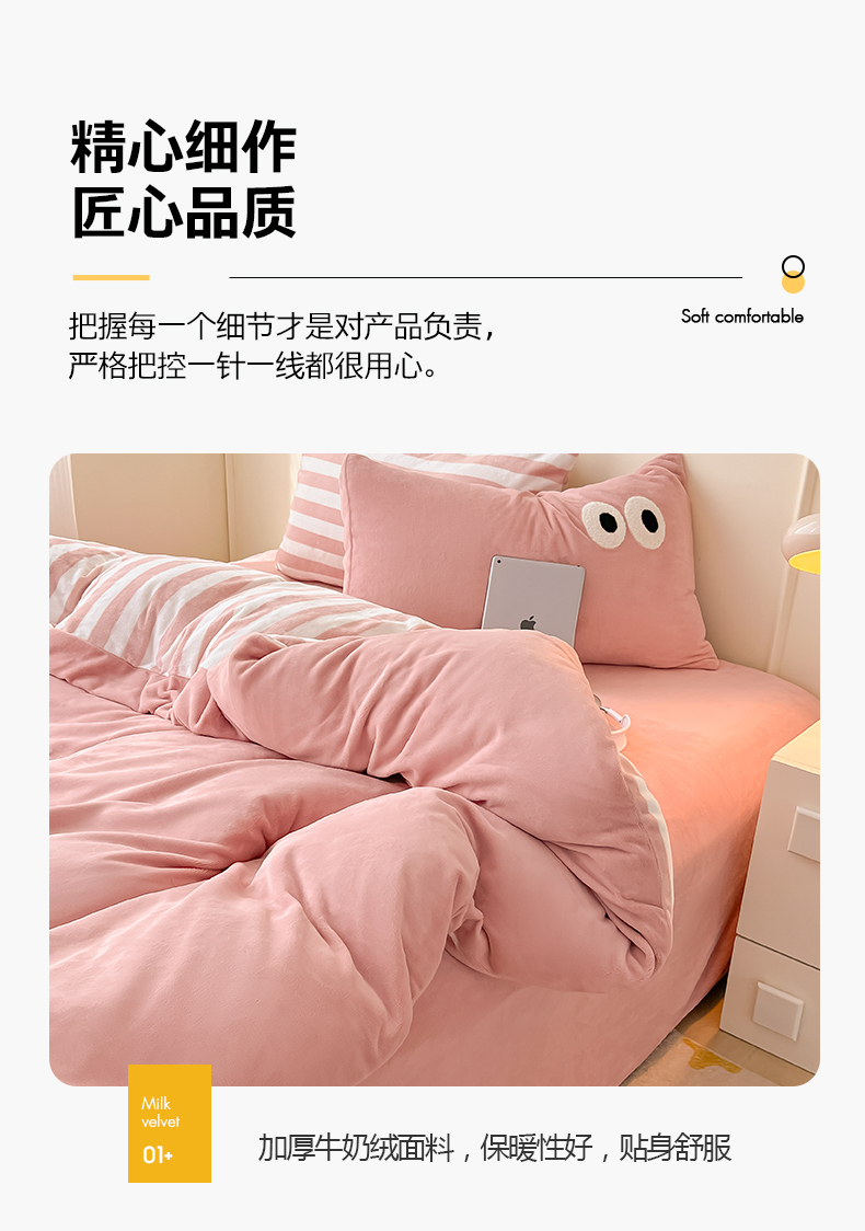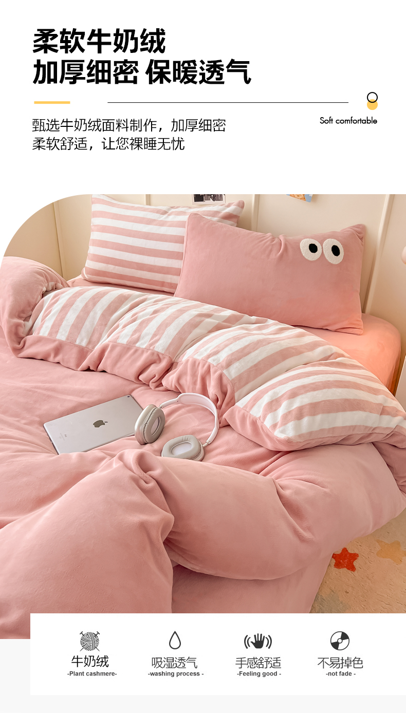 当前位置: 91家纺网 > 商品网购 > 床品套件 > 四件套 > 牛奶绒四件套 > 悦织湾家纺 2025新款简约牛奶绒眼睛系列纯色条纹轻奢时尚卡通冬季加厚保暖学生宿舍三四件套 简约牛奶绒豆沙苏条