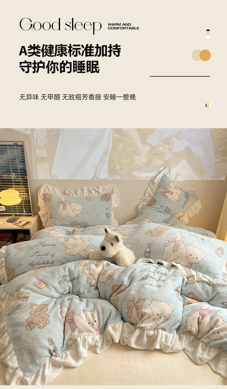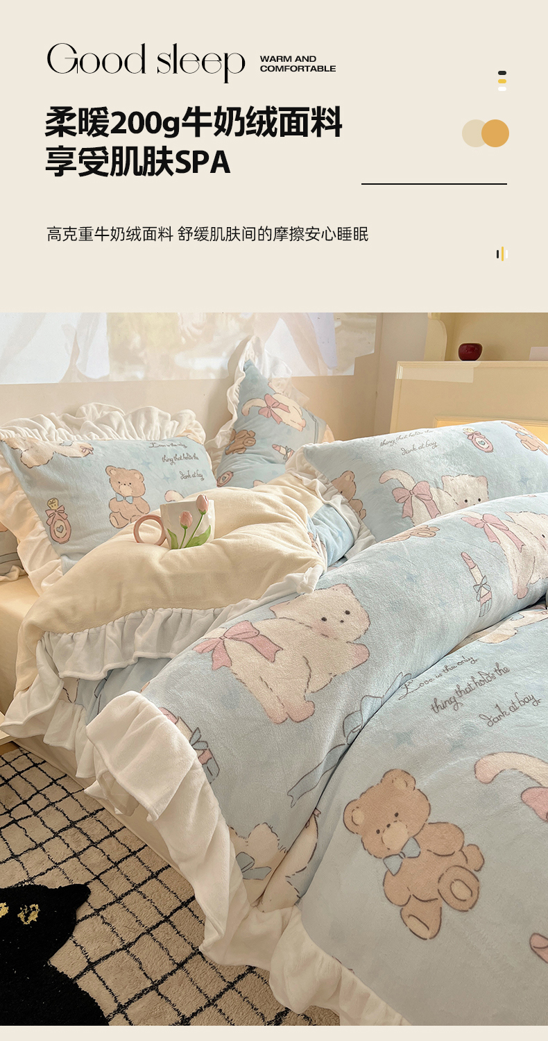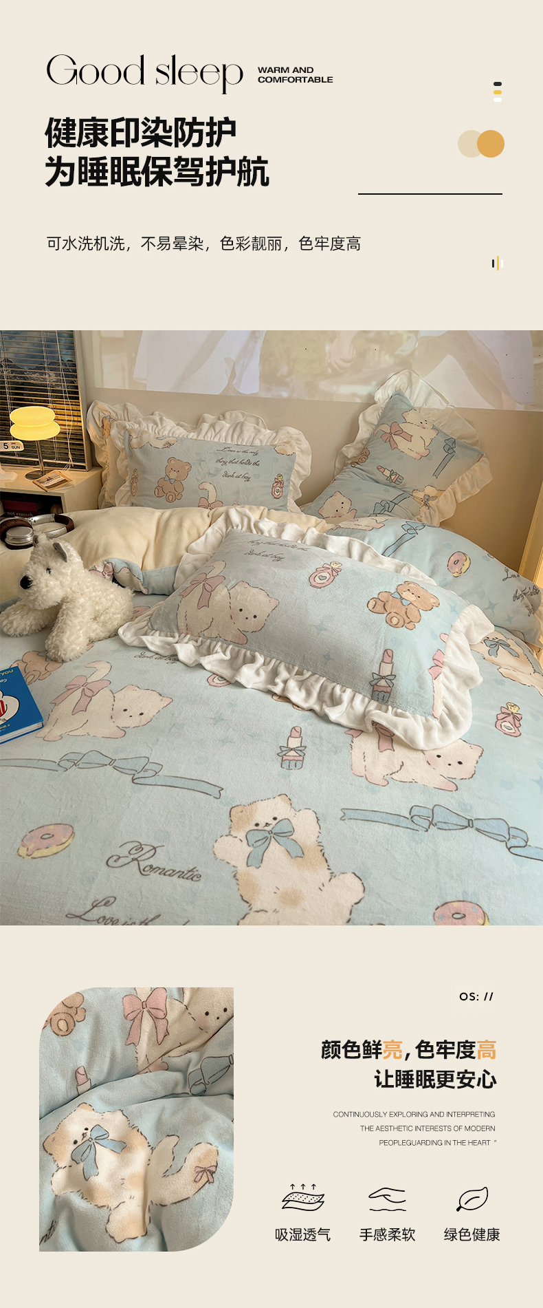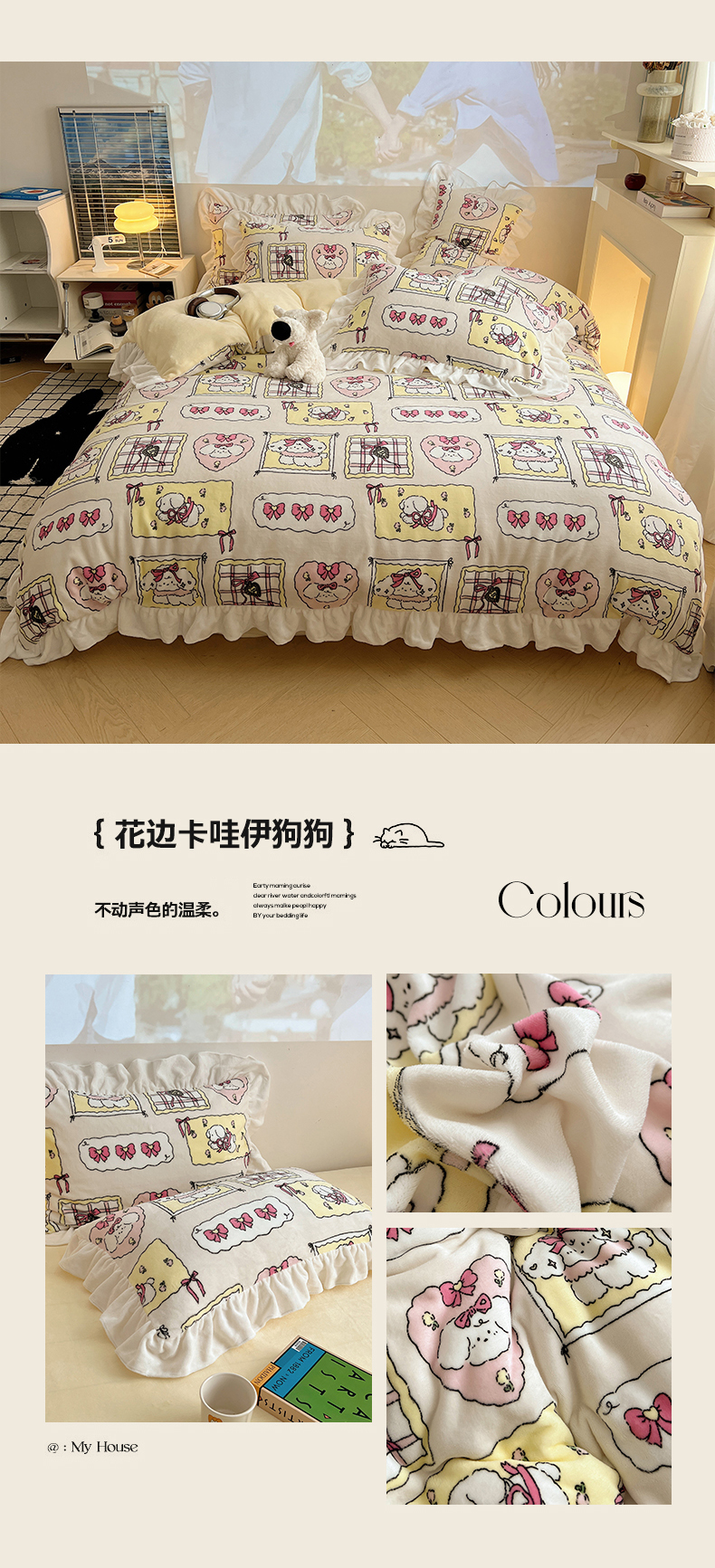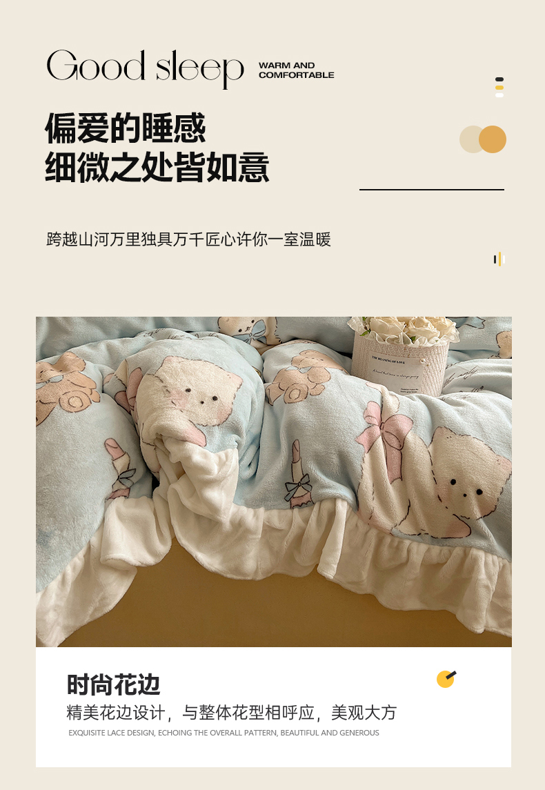 当前位置: 91家纺网 > 商品网购 > 床品套件 > 四件套 > 牛奶绒四件套 > 六巷胡同 2025新款韩版INS卡通花边款A类牛奶绒四件套 花边元气猫咪酱