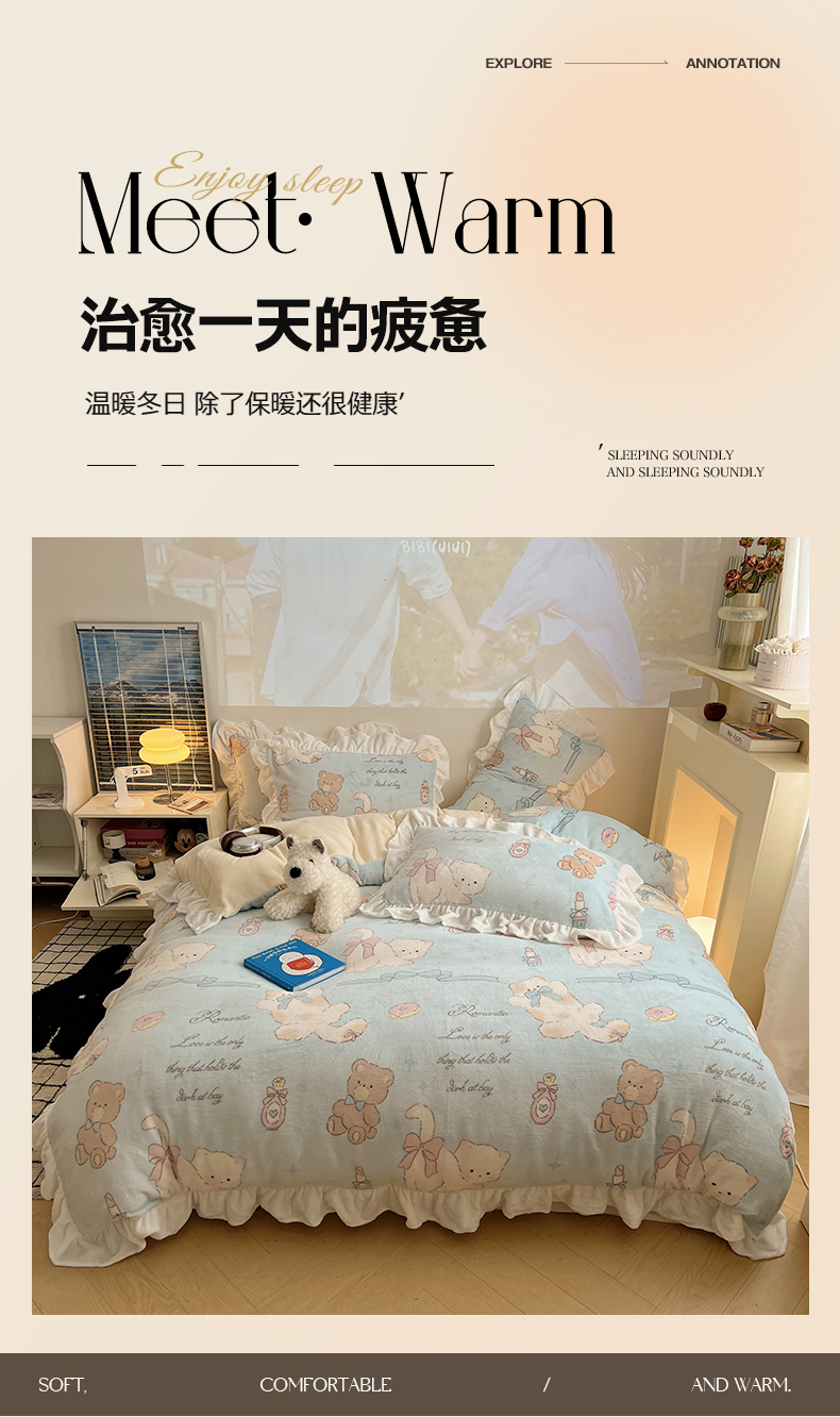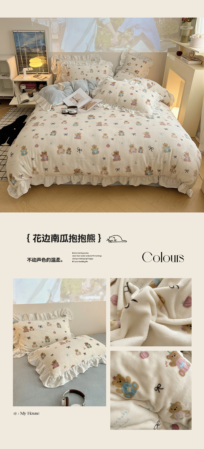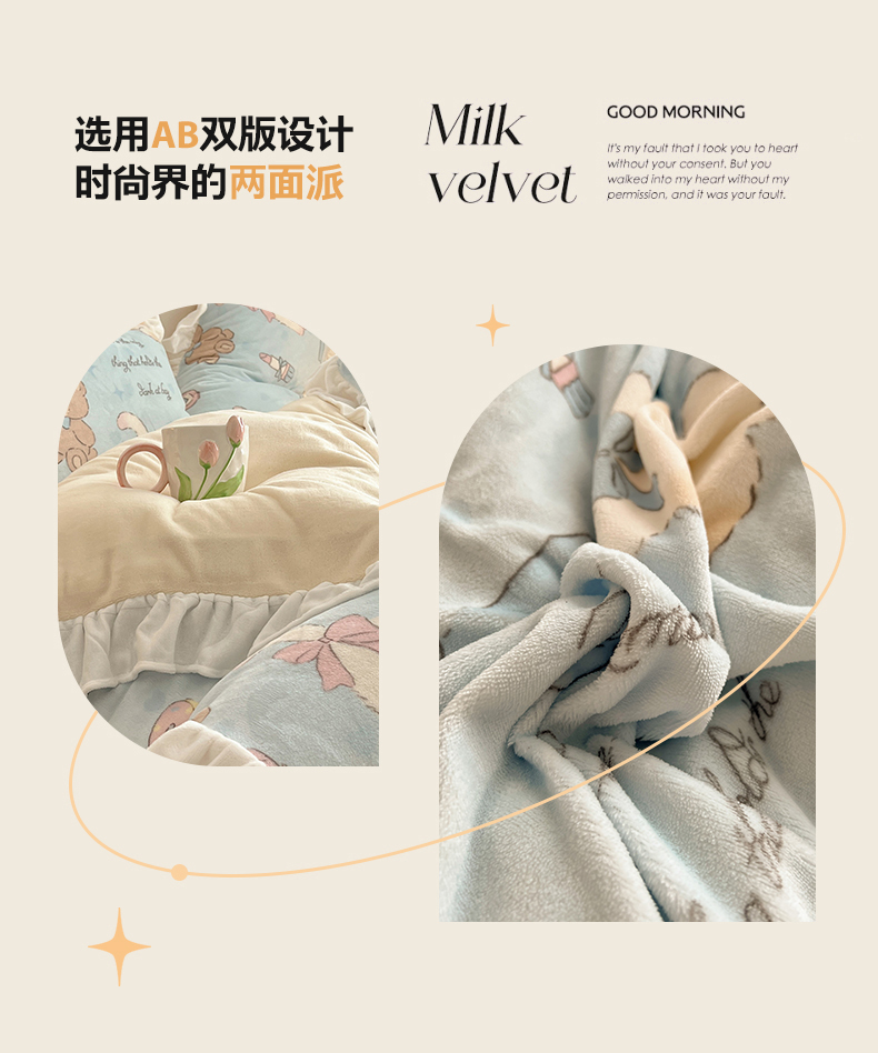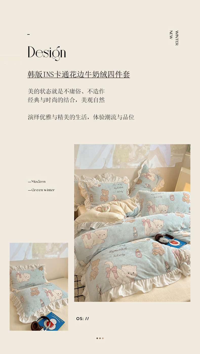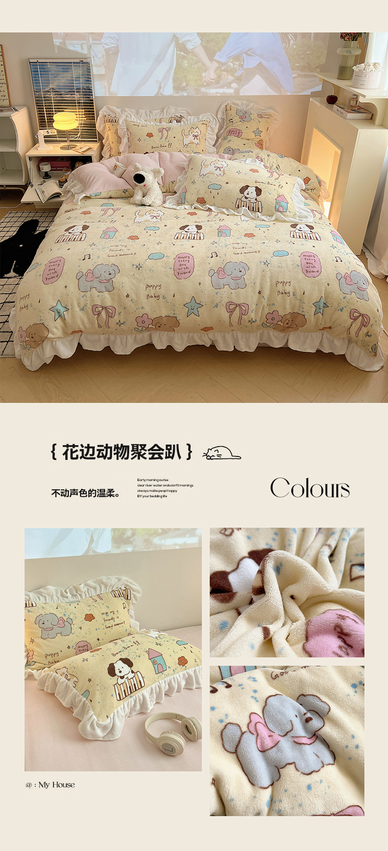 当前位置: 91家纺网 > 商品网购 > 床品套件 > 四件套 > 牛奶绒四件套 > 六巷胡同 2025新款韩版INS卡通花边款A类牛奶绒四件套 花边元气猫咪酱