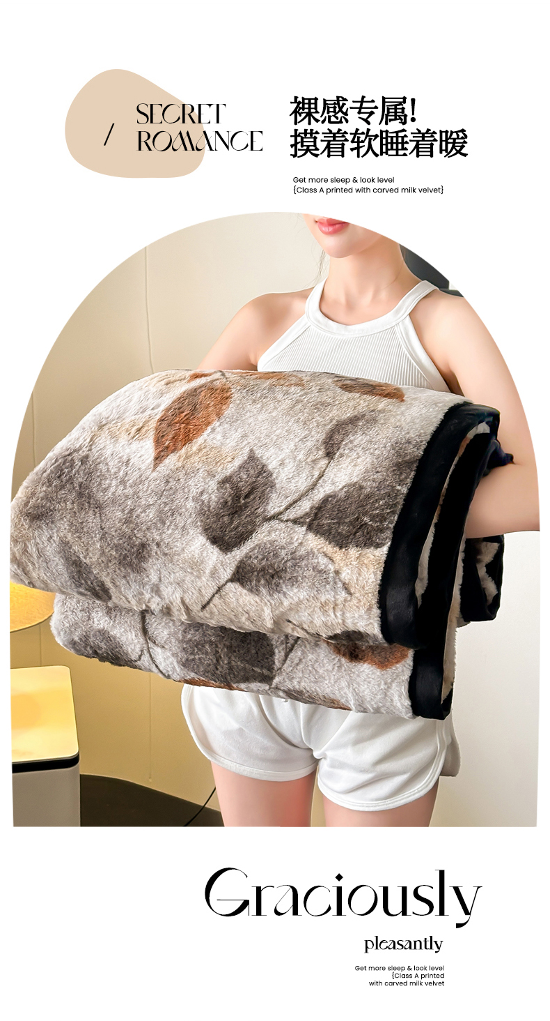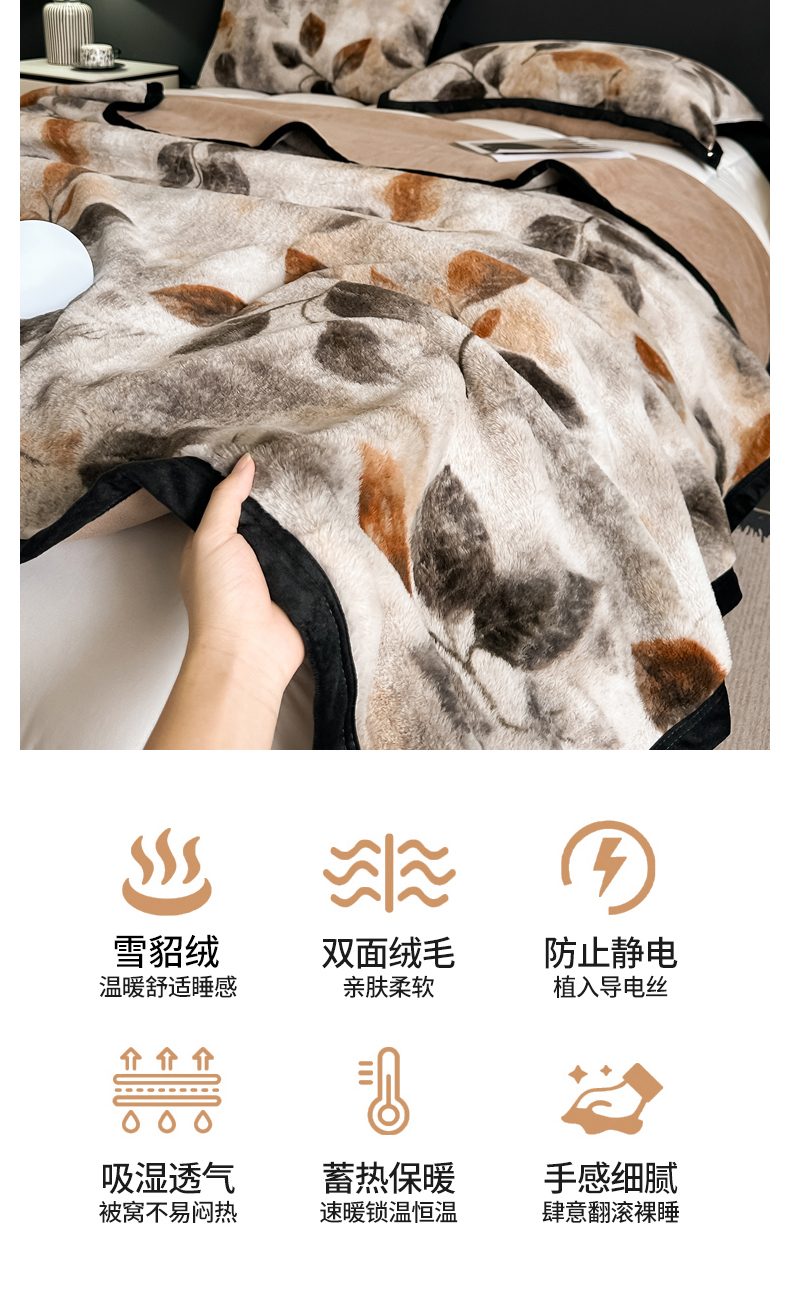 商品名称:芙绣家纺 2025新款雪貂绒毛毯轻奢高级感办公室午休毯空调毯沙发毯加厚 贝拉