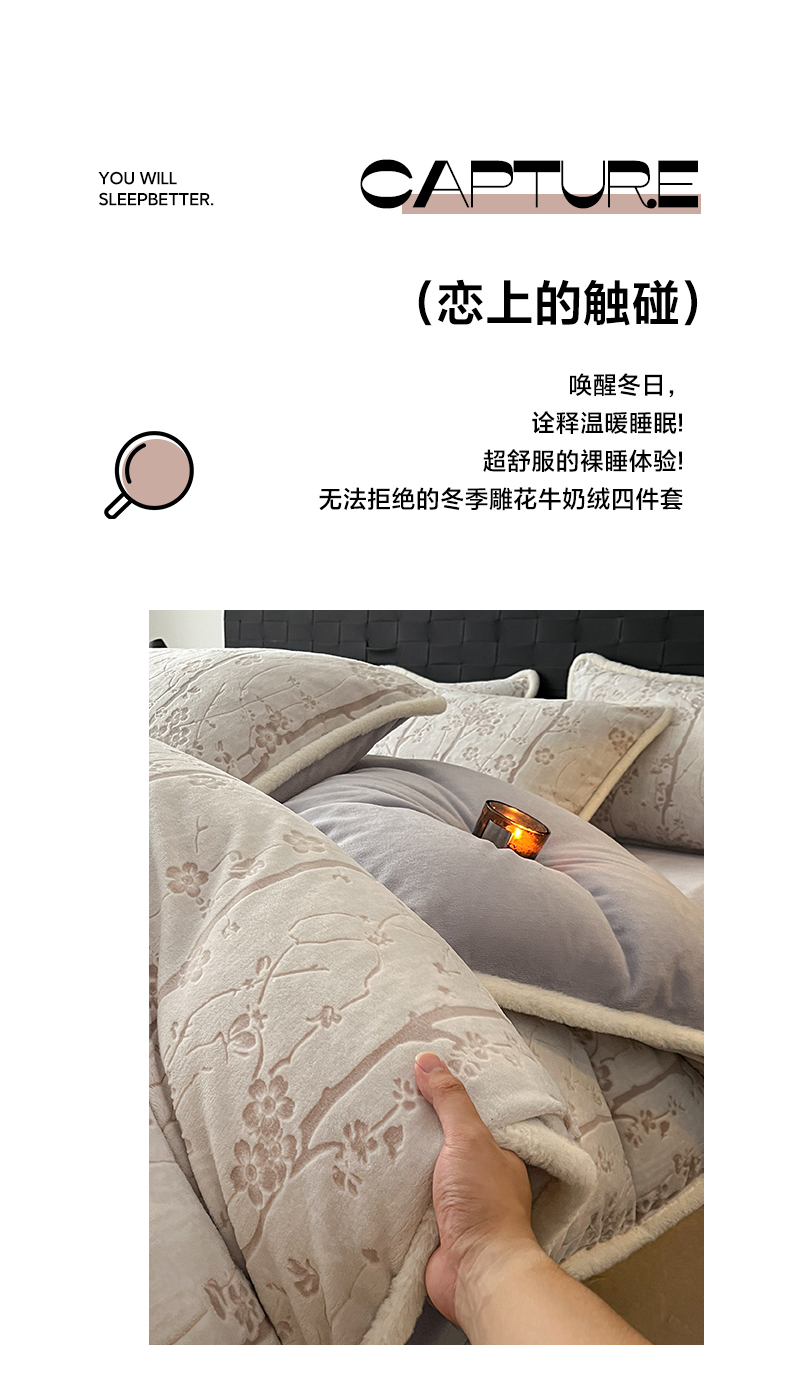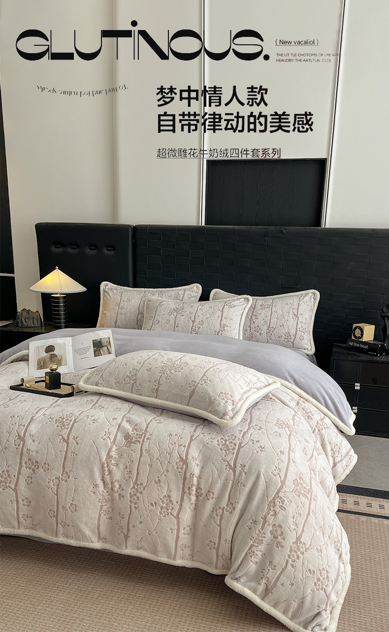 (总)狂想家 2025新款包边加厚雕花牛奶绒四件套,花样年华-卡其,花样年华-深咖,花样年华-玉粉,暖冬-暖冬白,暖冬-香芋紫,暖冬-玉粉