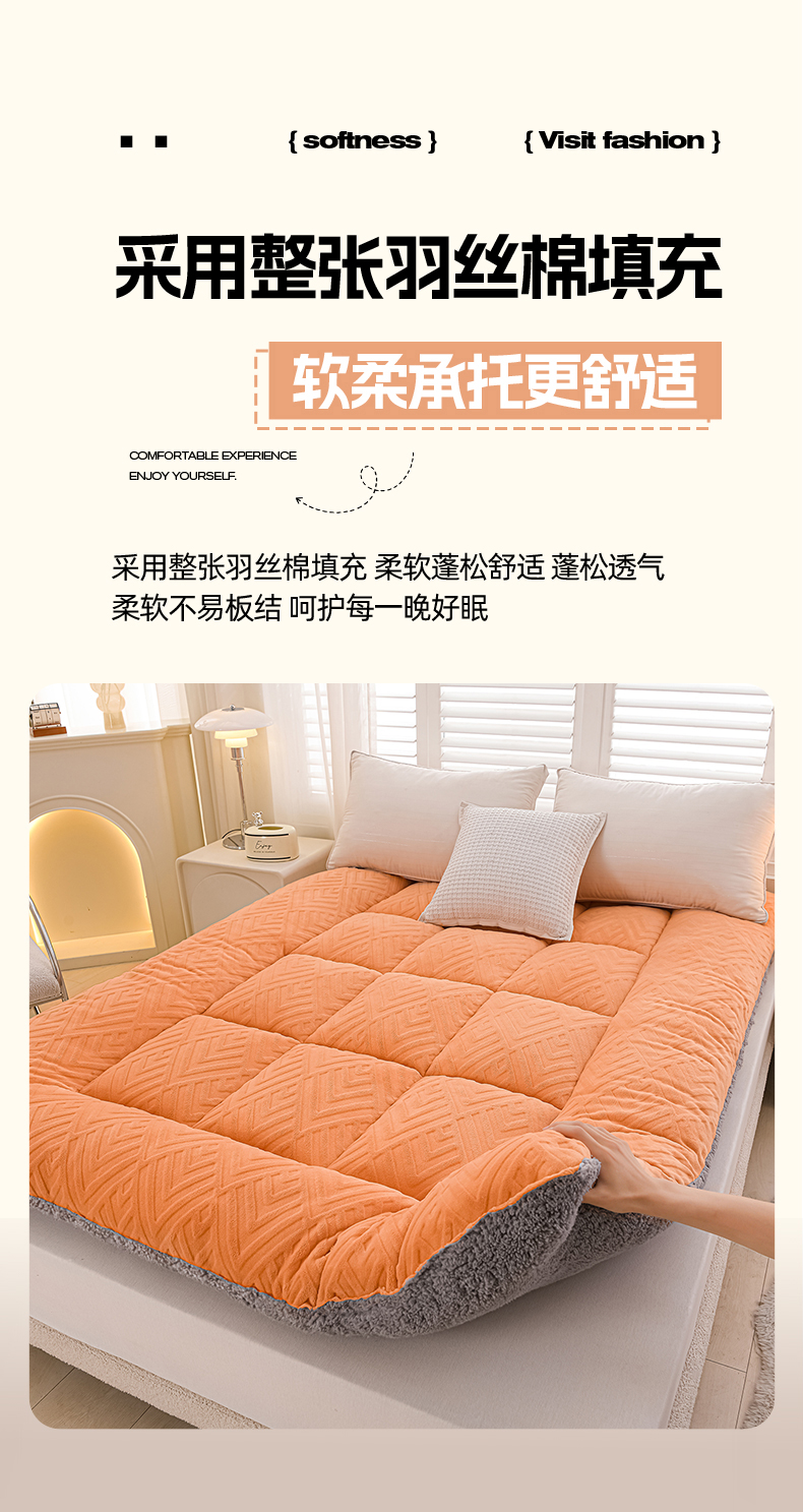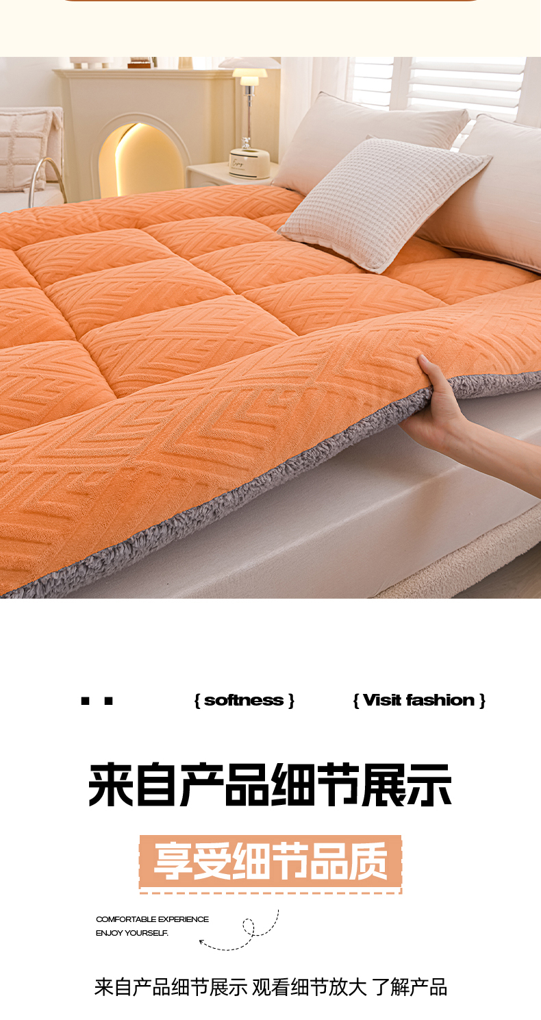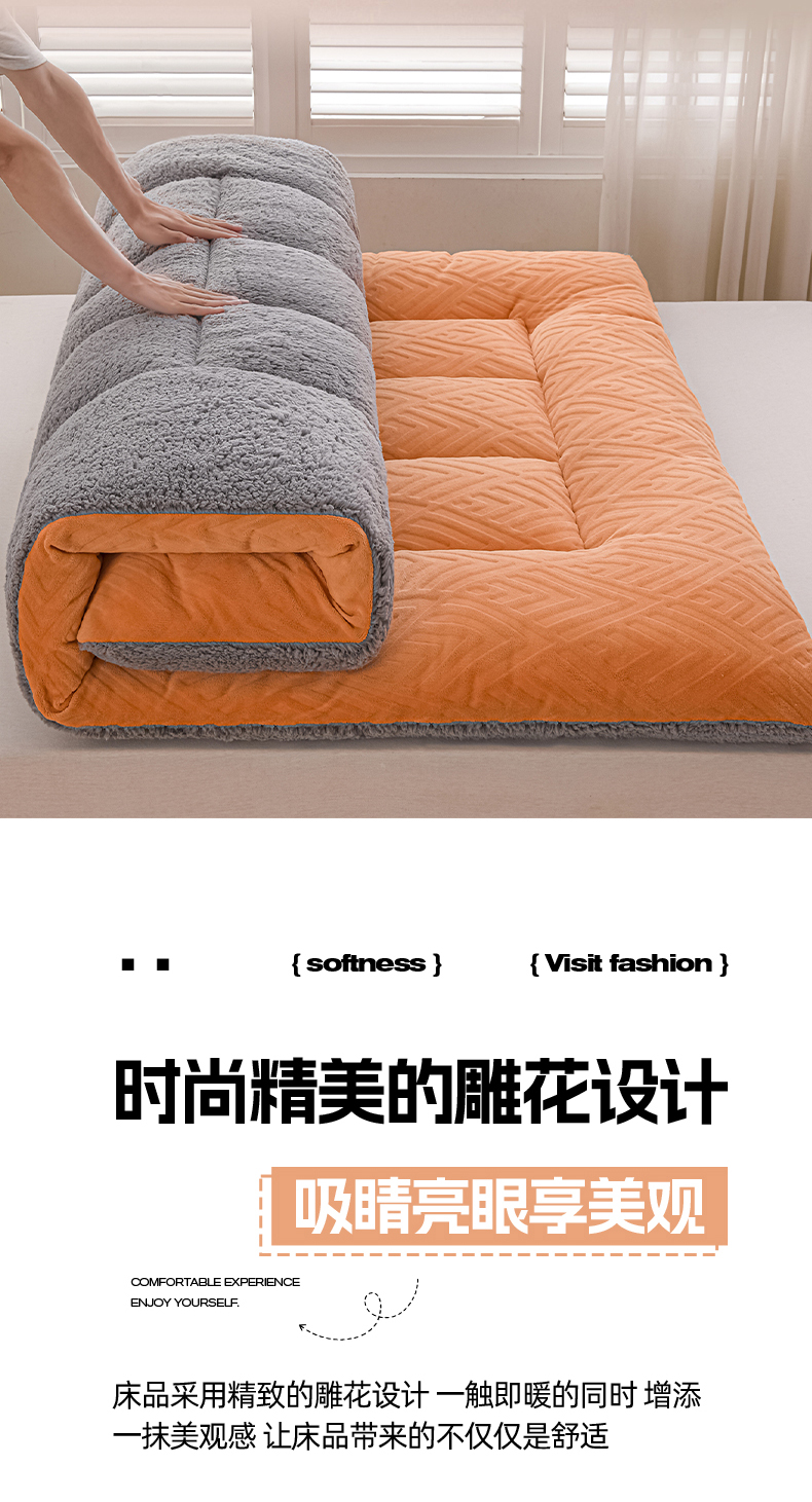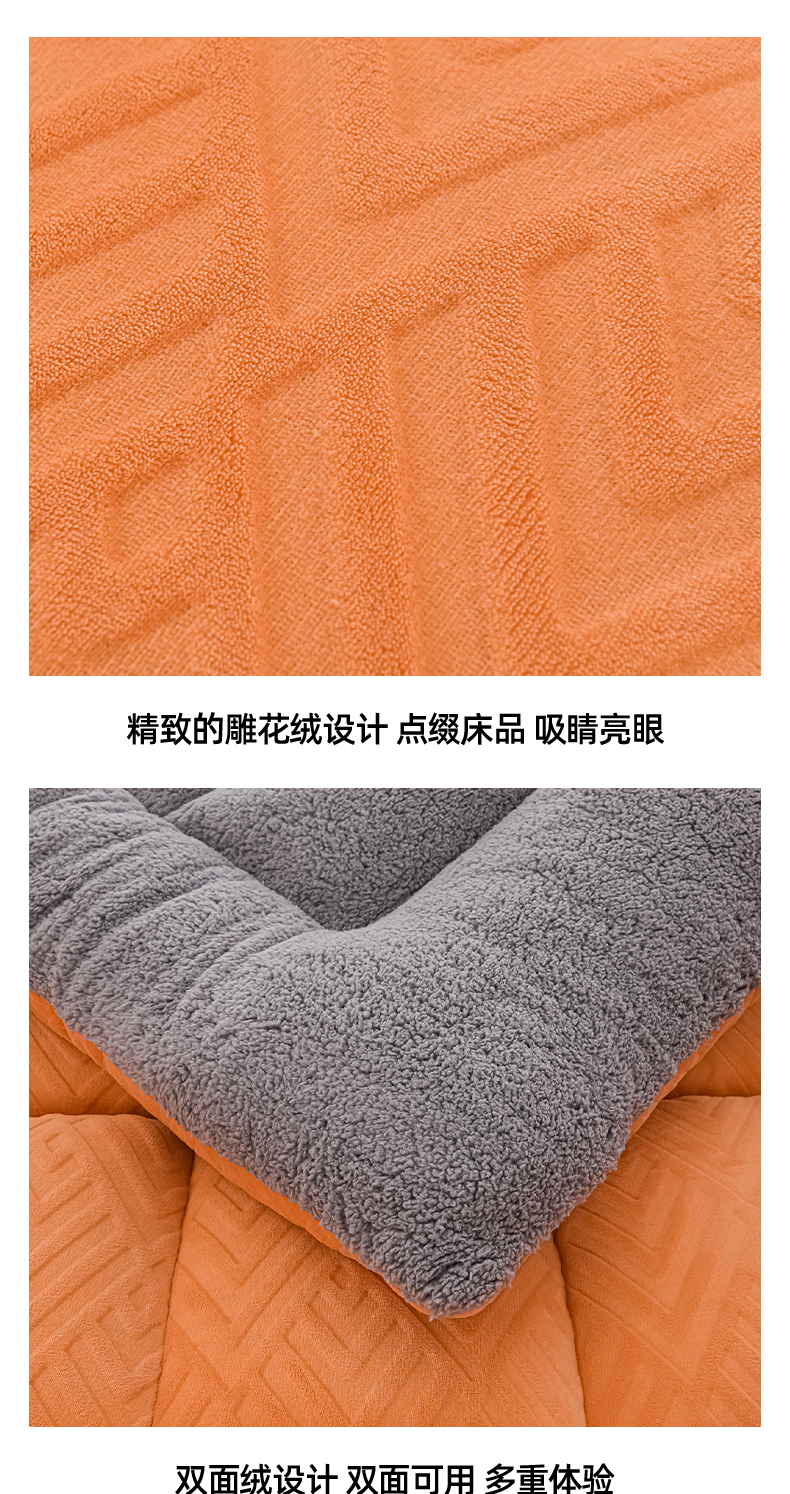 当前位置: 91家纺网 > 商品网购 > 床垫/床褥 > 羊羔绒床垫 > 金灵居 2025新款雕花牛奶绒床垫羊羔绒床垫床褥子跨境外贸 橙拼灰