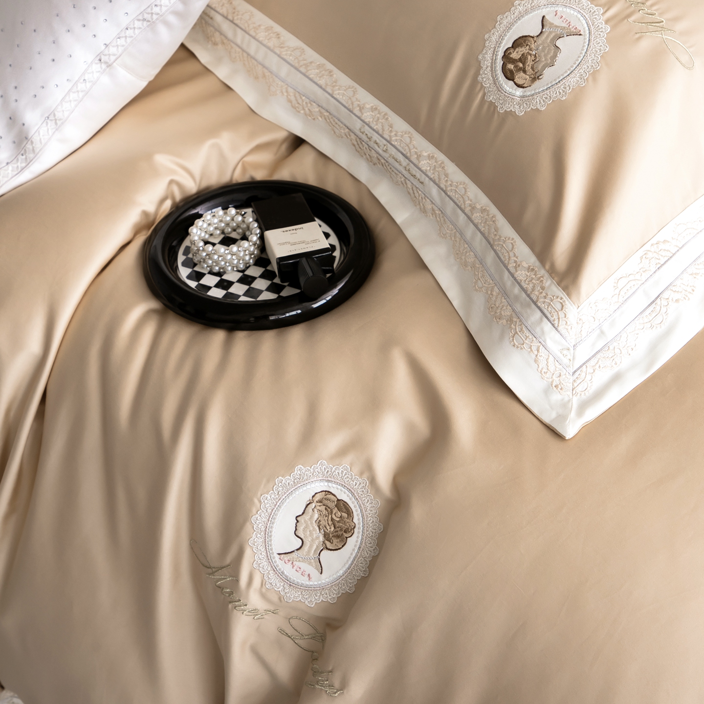 馨蕊家居 2025新款100s全棉刺绣四件套-慕恋 (会员-20) 控价398/418 劵后控价:不低于368/388(礼盒包装) 慕恋-奶咖