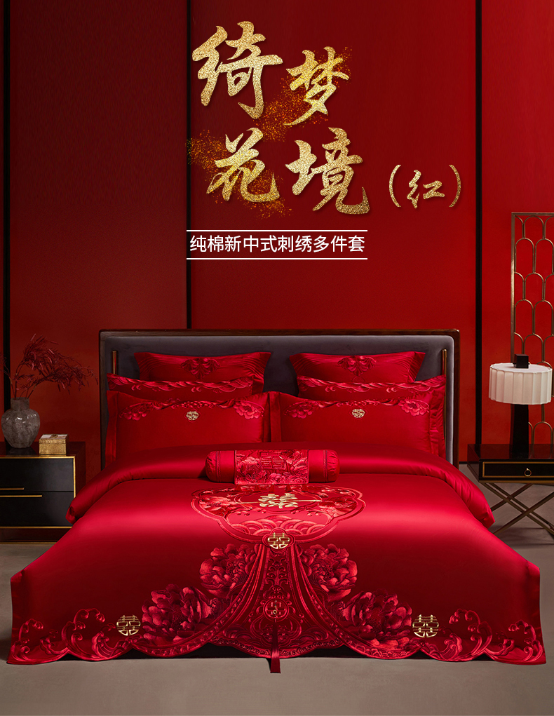当前位置: 91家纺网 > 商品网购 > 床品套件 > 四件套 > 婚庆四件套 > 红番天家居馆 (控价)2025新款纯棉新中式刺绣婚庆四件套(每款供货价的基础上一切活动券后+100) 绮梦花境-红