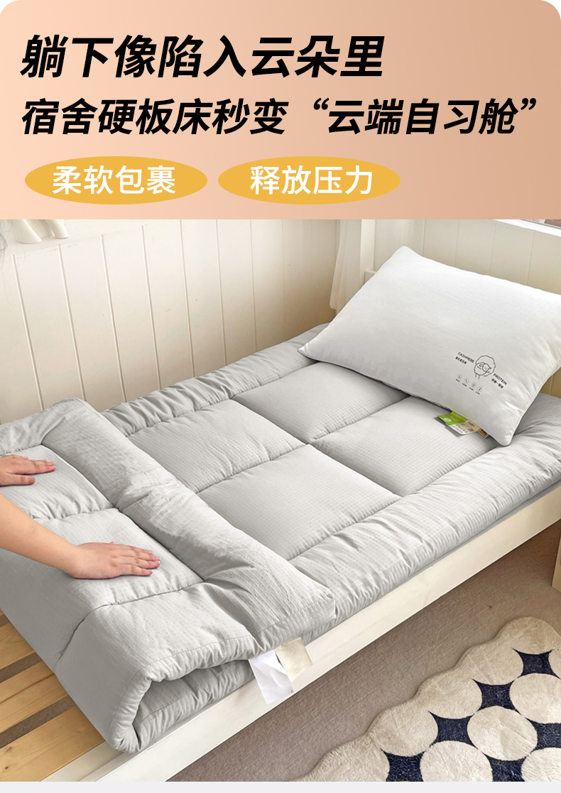 (总)爱彼家纺 2025新款学生季无印风水洗棉褥子枕芯学生套件宿舍单人90x190床褥套床垫套