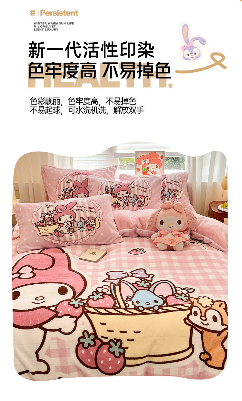 当前位置: 91家纺网 > 商品网购 > 床品套件 > 四件套 > 牛奶绒四件套 > 金爱家 2025新品大版卡通平网数码印花加厚高克重牛奶绒皮卡丘系列四件套 绒大版-野营美乐蒂