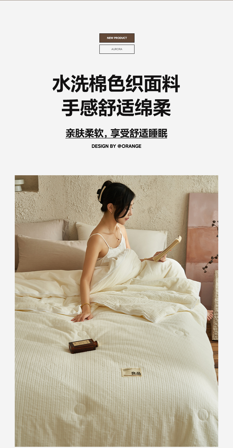 • 91家纺网 家纺一手货源 找家纺 子由家居 2025新款水洗简约条纹大豆子母被被子被芯 色织条纹-本白