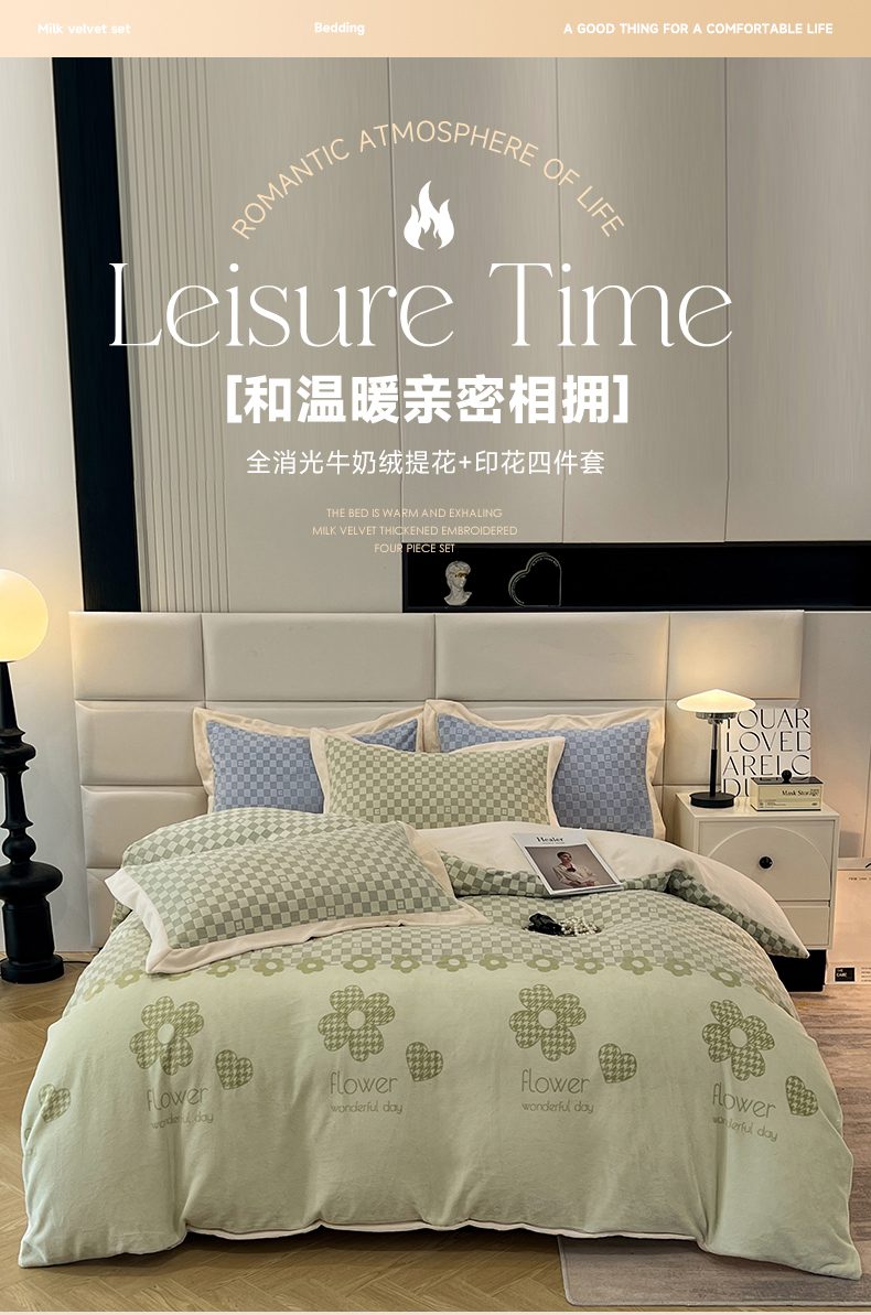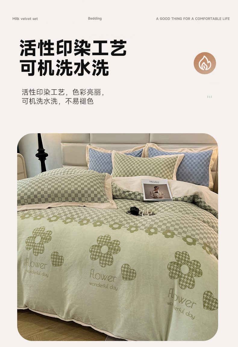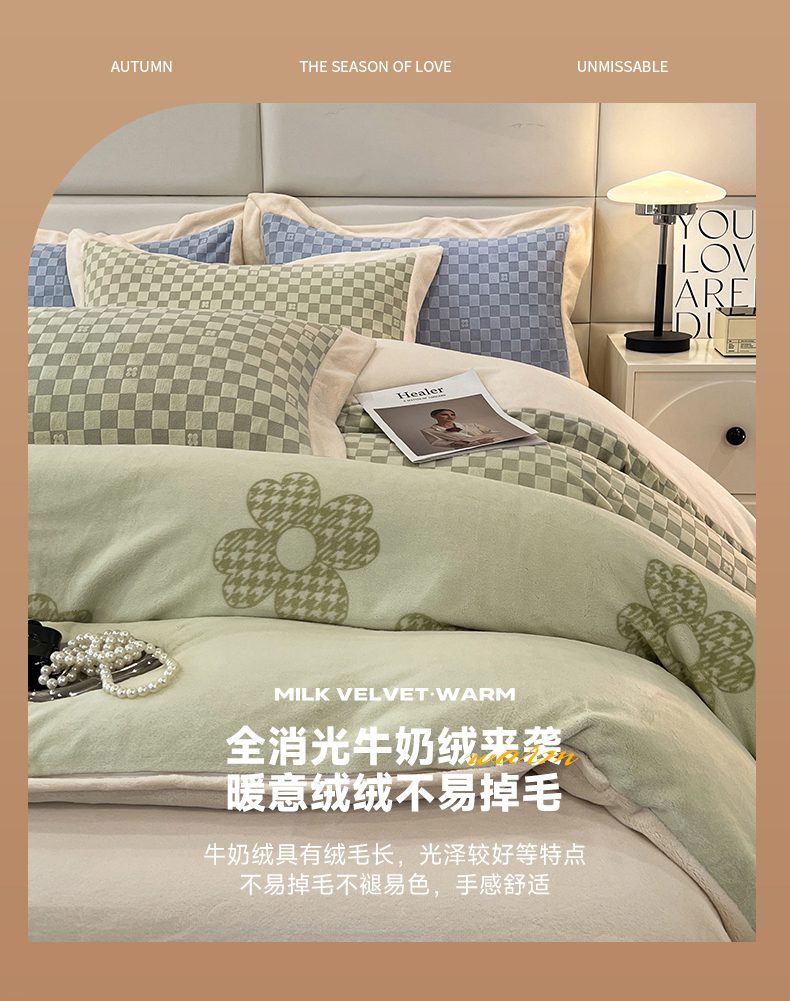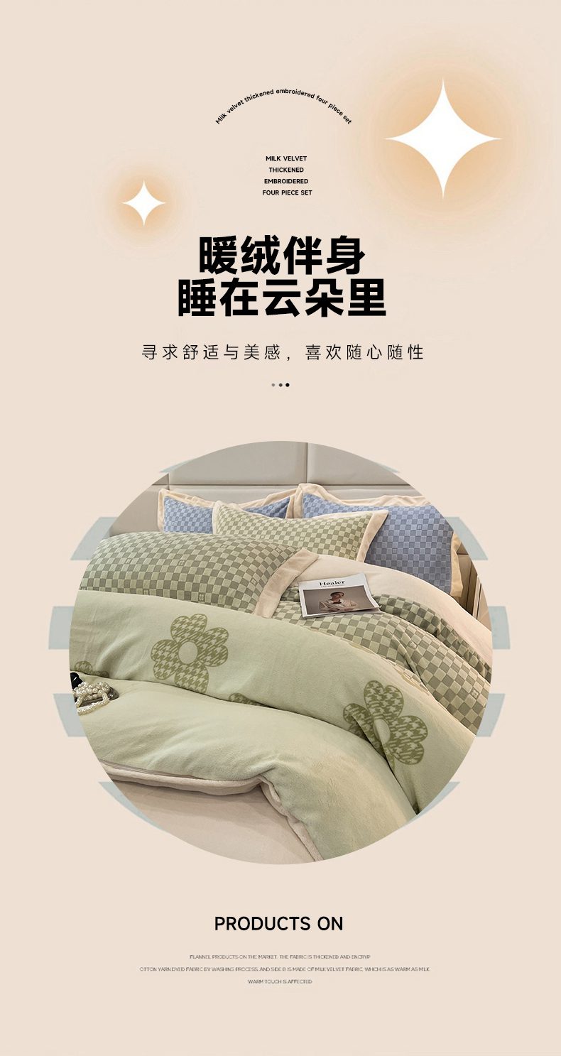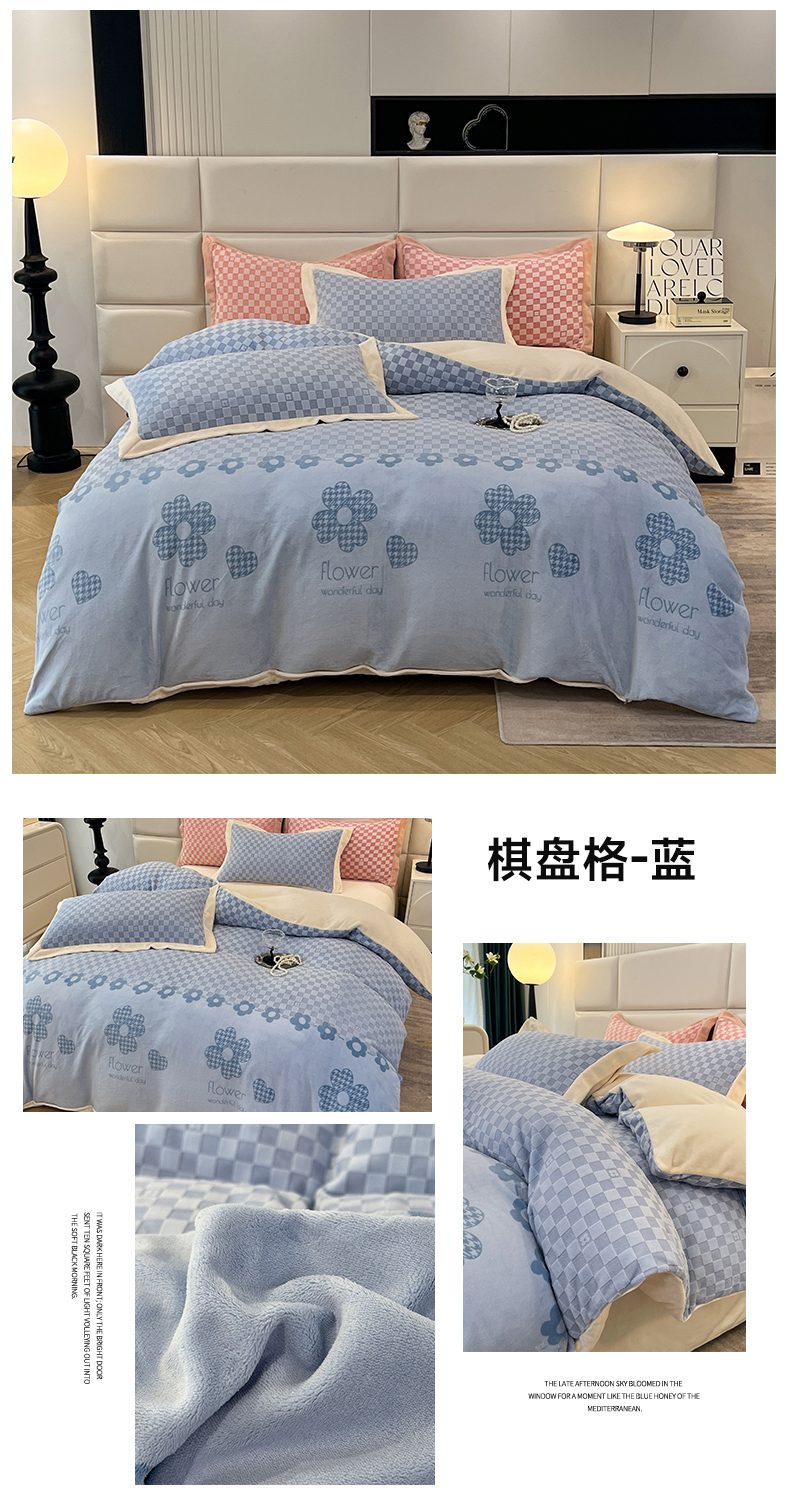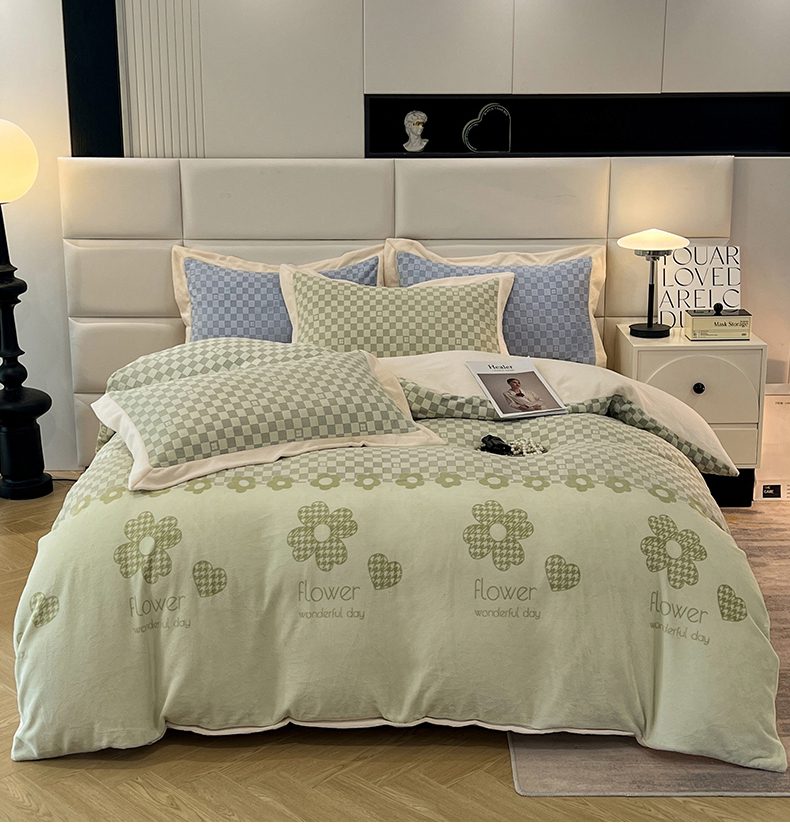 花香四季家纺 2025新款全消光工艺320克牛奶绒四件套 棋盘格-绿