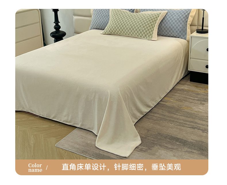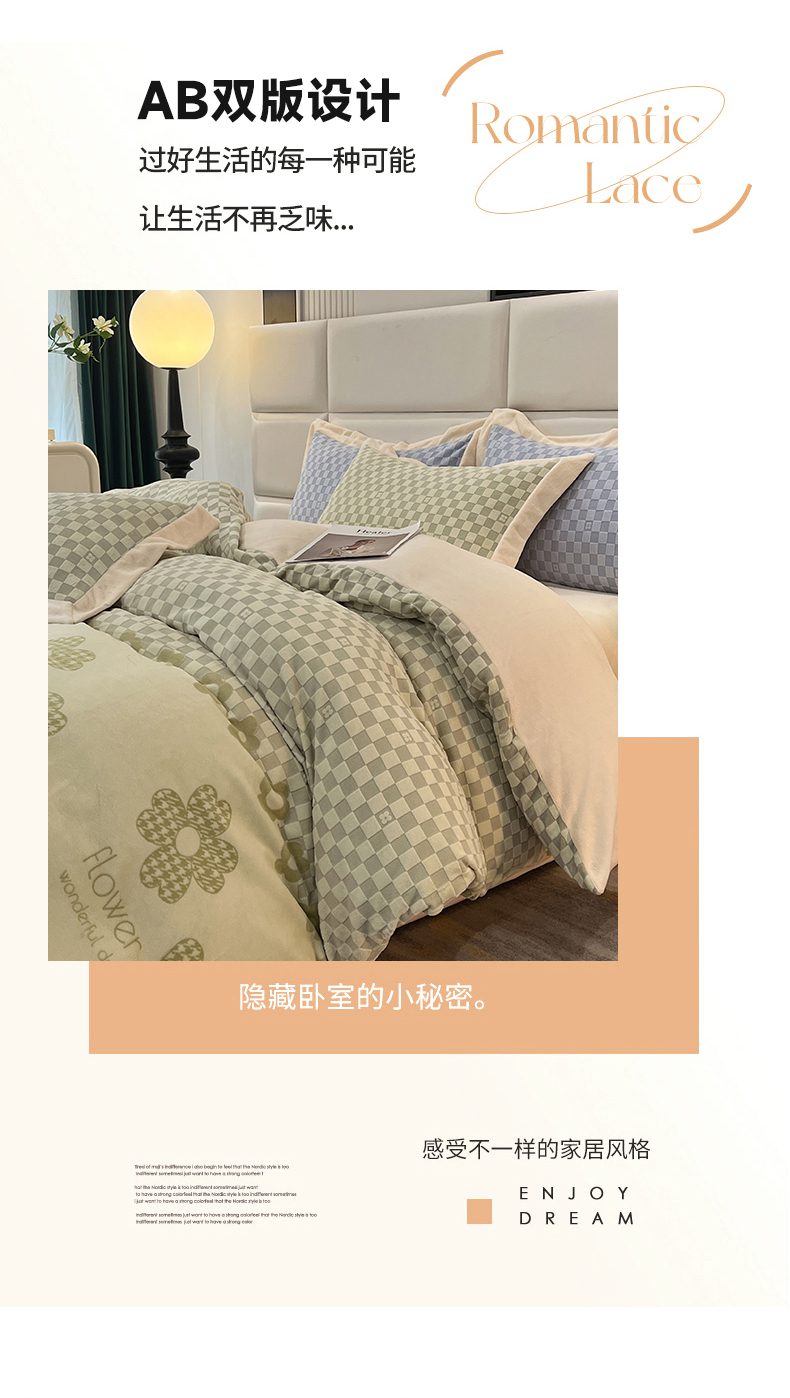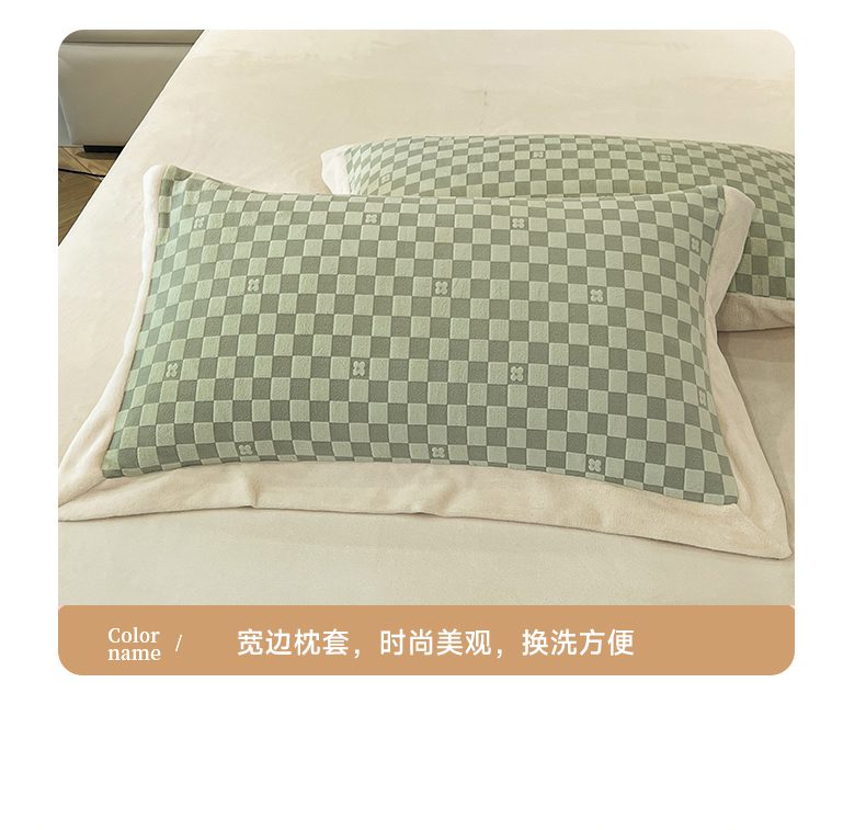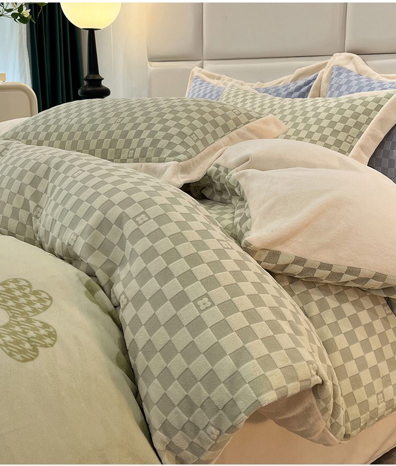 商品名称:花香四季家纺 2025新款全消光工艺320克牛奶绒四件套 棋盘格-绿