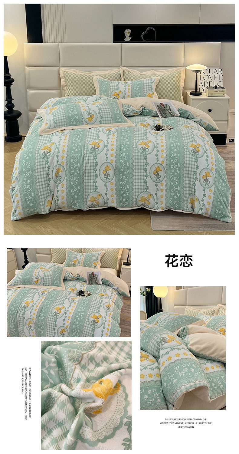 (总)花香四季家纺 2025新款牛奶绒夹棉床盖单件三件套-浪漫花语,浪漫花语-奶油白,浪漫花语-复古绿,浪漫花语-樱花粉,浪漫花语-优雅紫