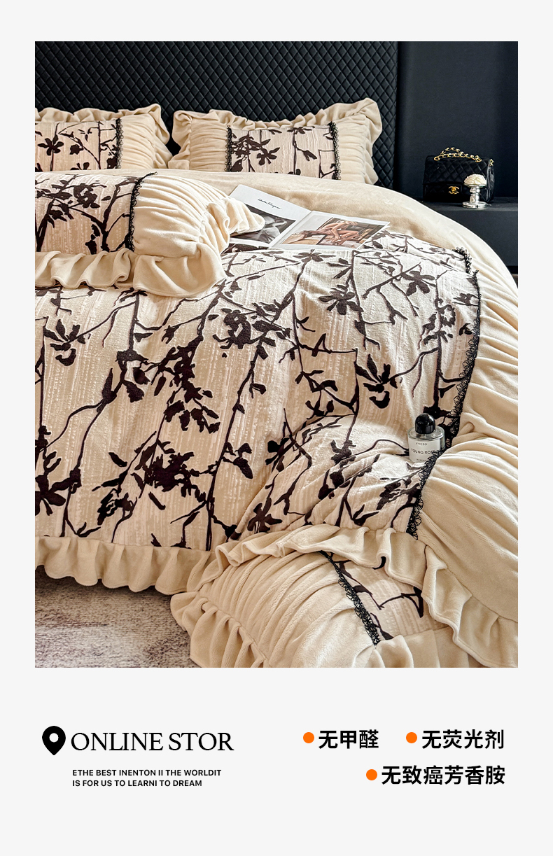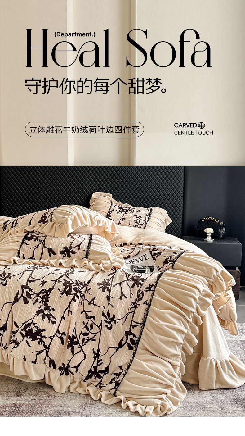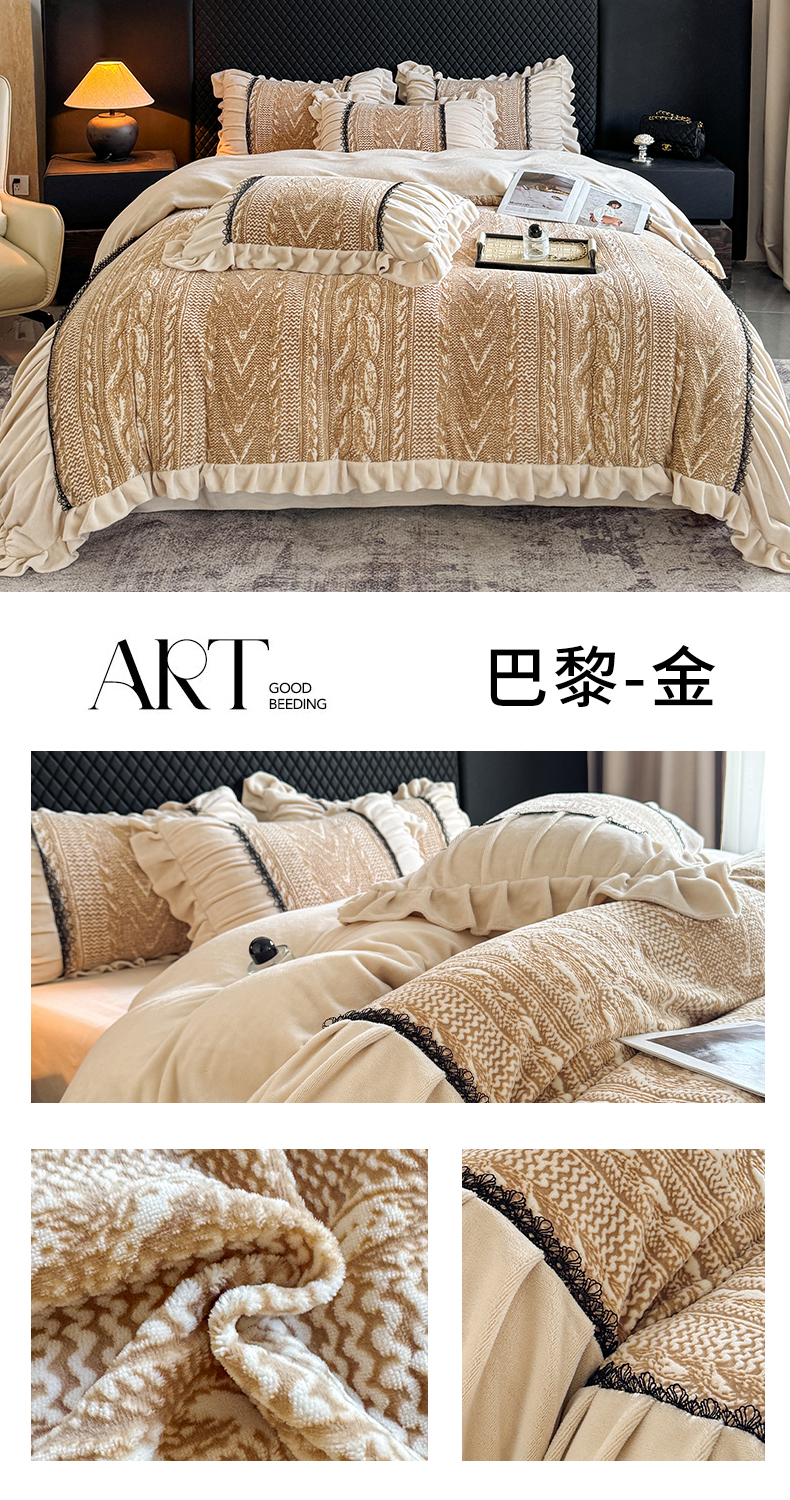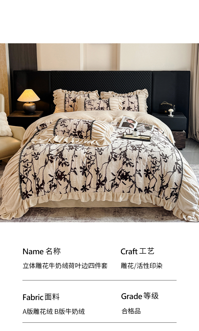 当前位置: 91家纺网 > 商品网购 > 床品套件 > 四件套 > 牛奶绒四件套 > 极简 2025新款立体雕花牛奶绒荷叶边四件套 巴黎-奶黄米