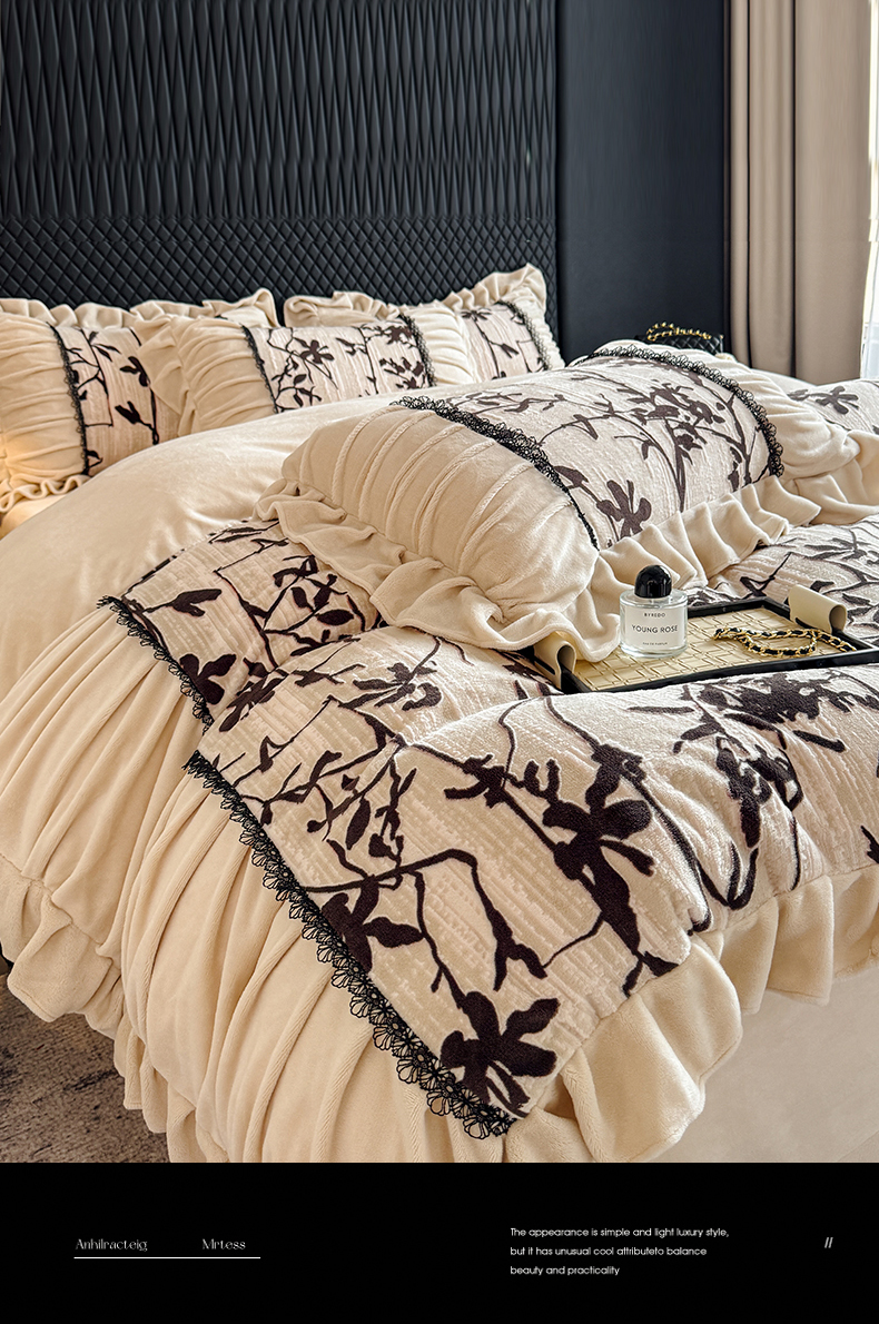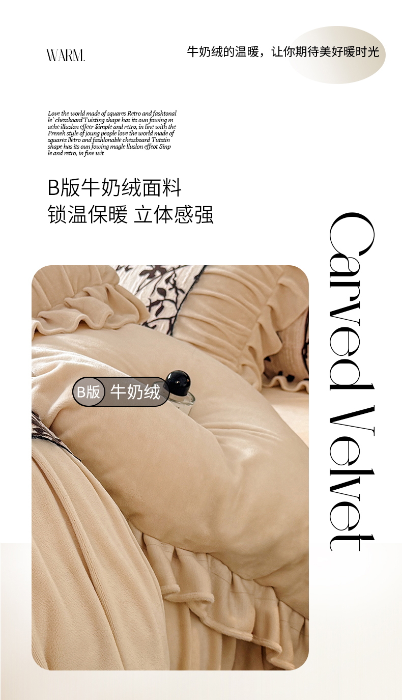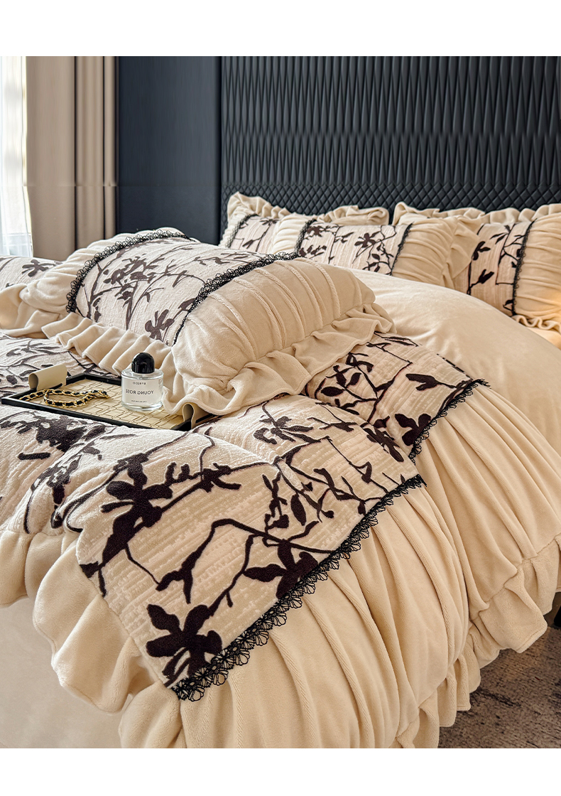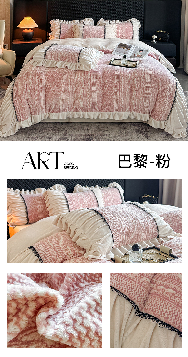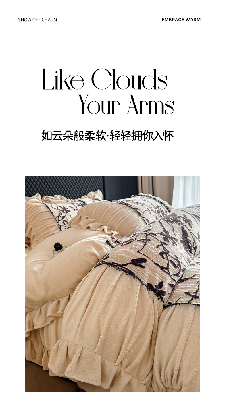 当前位置: 91家纺网 > 商品网购 > 床品套件 > 四件套 > 牛奶绒四件套 > 极简 2025新款立体雕花牛奶绒荷叶边四件套 巴黎-奶黄米