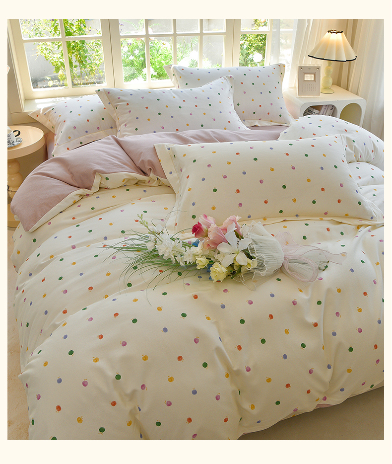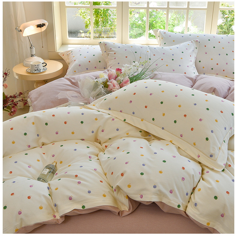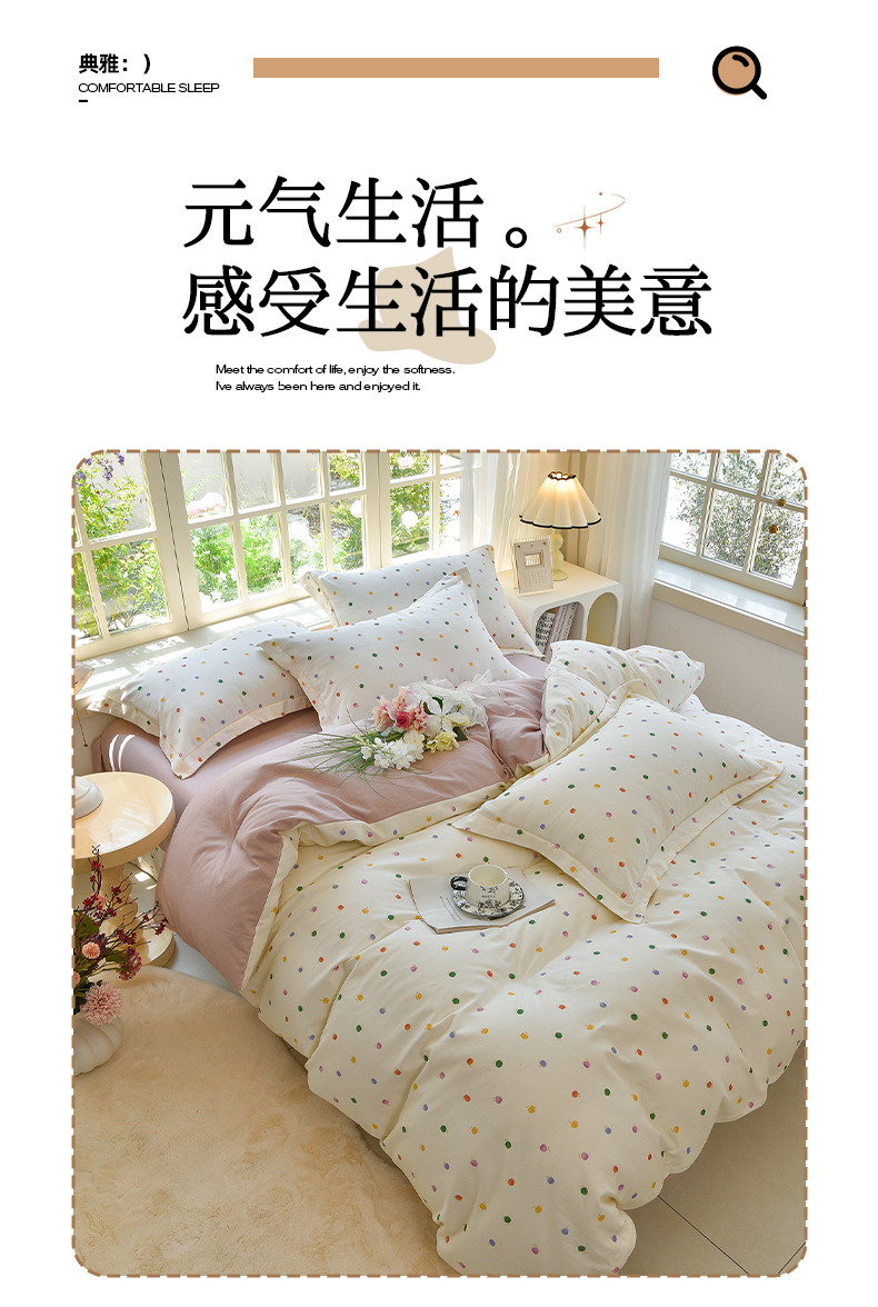 董成龙家纺 2025新款全棉磨毛数码印花四件套 甜心乐园-米