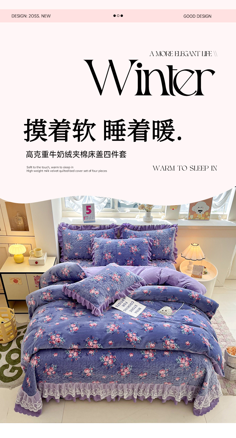 当前位置: 91家纺网 > 商品网购 > 床品套件 > 四件套 > 牛奶绒四件套 > 铠畅 2025新款加厚牛奶绒床盖四件套 罗兰秘境