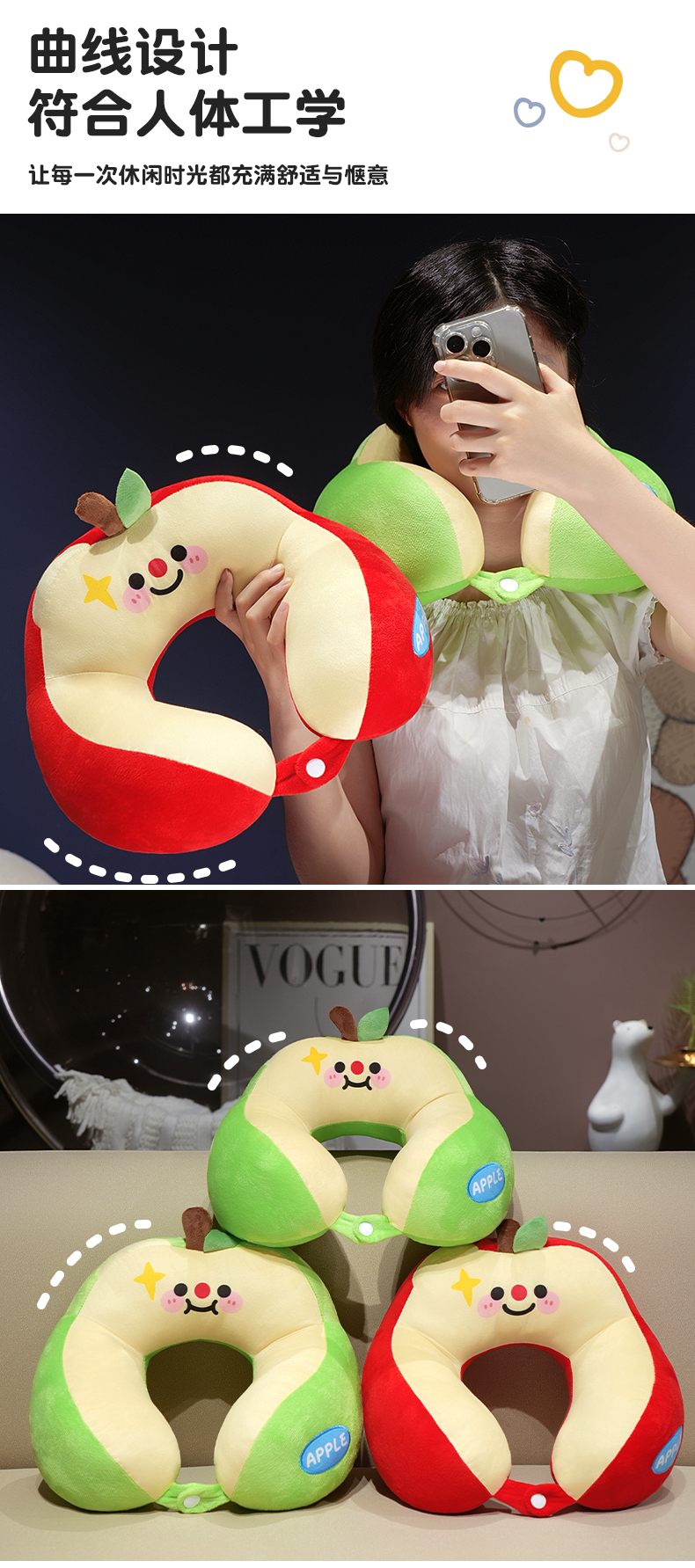 当前位置: 91家纺网 > 商品网购 > 枕头/枕芯/保健枕/颈椎枕 > U型枕 > 仟亿莱 2025新款苹果驼峰U型枕 组合图仅供展示不可下单 30X30cm