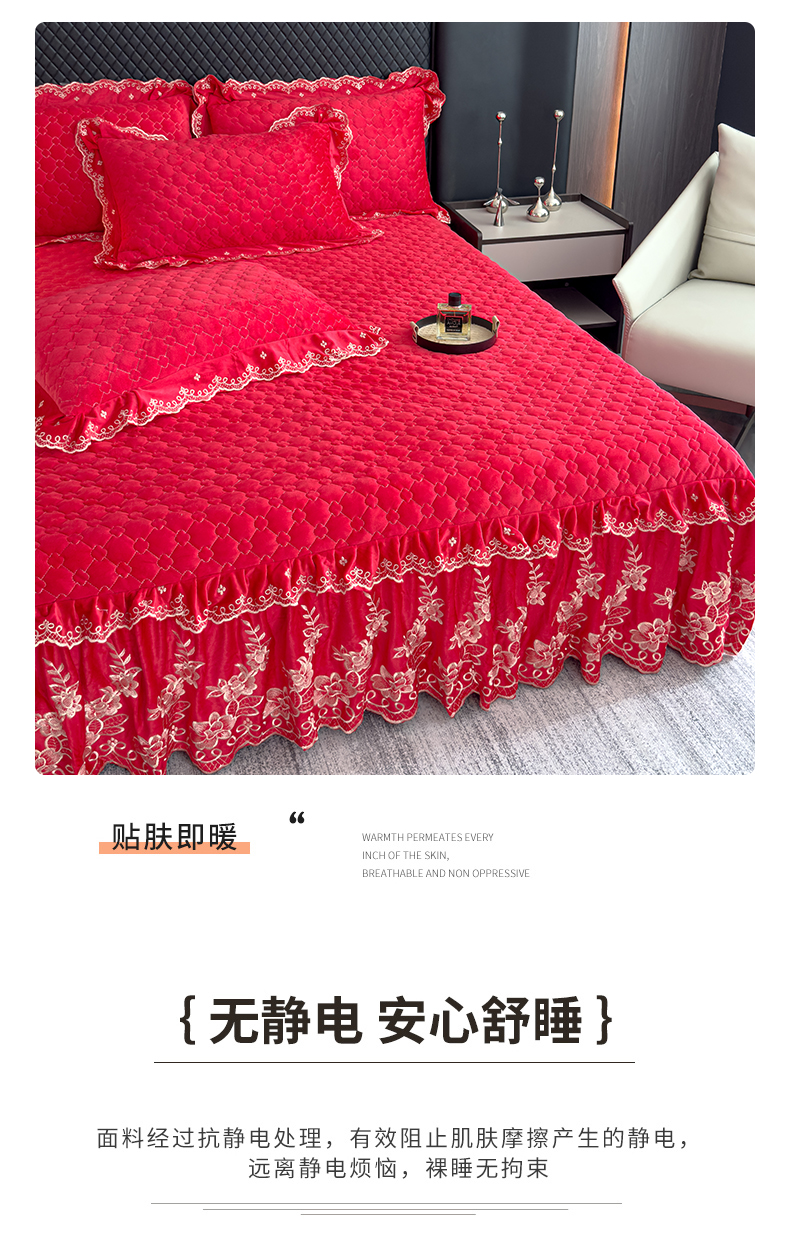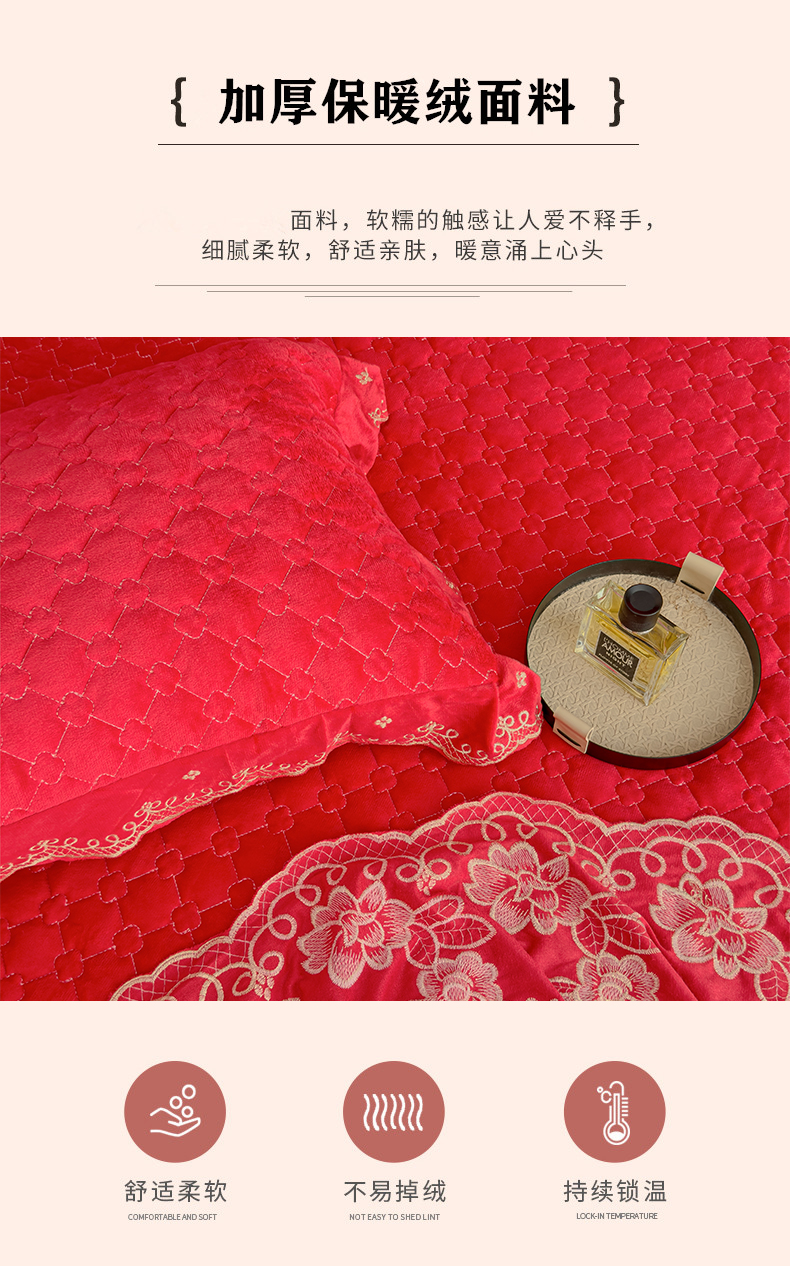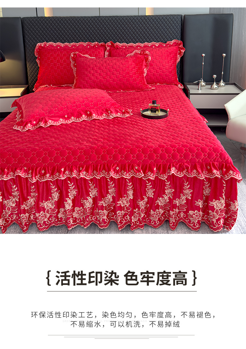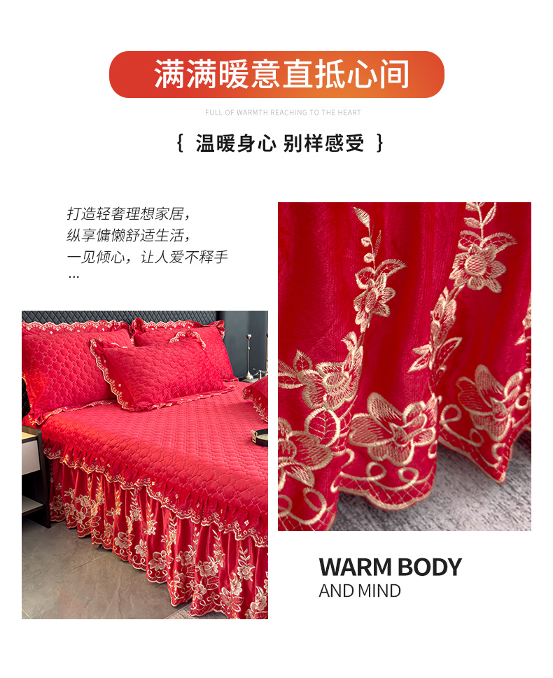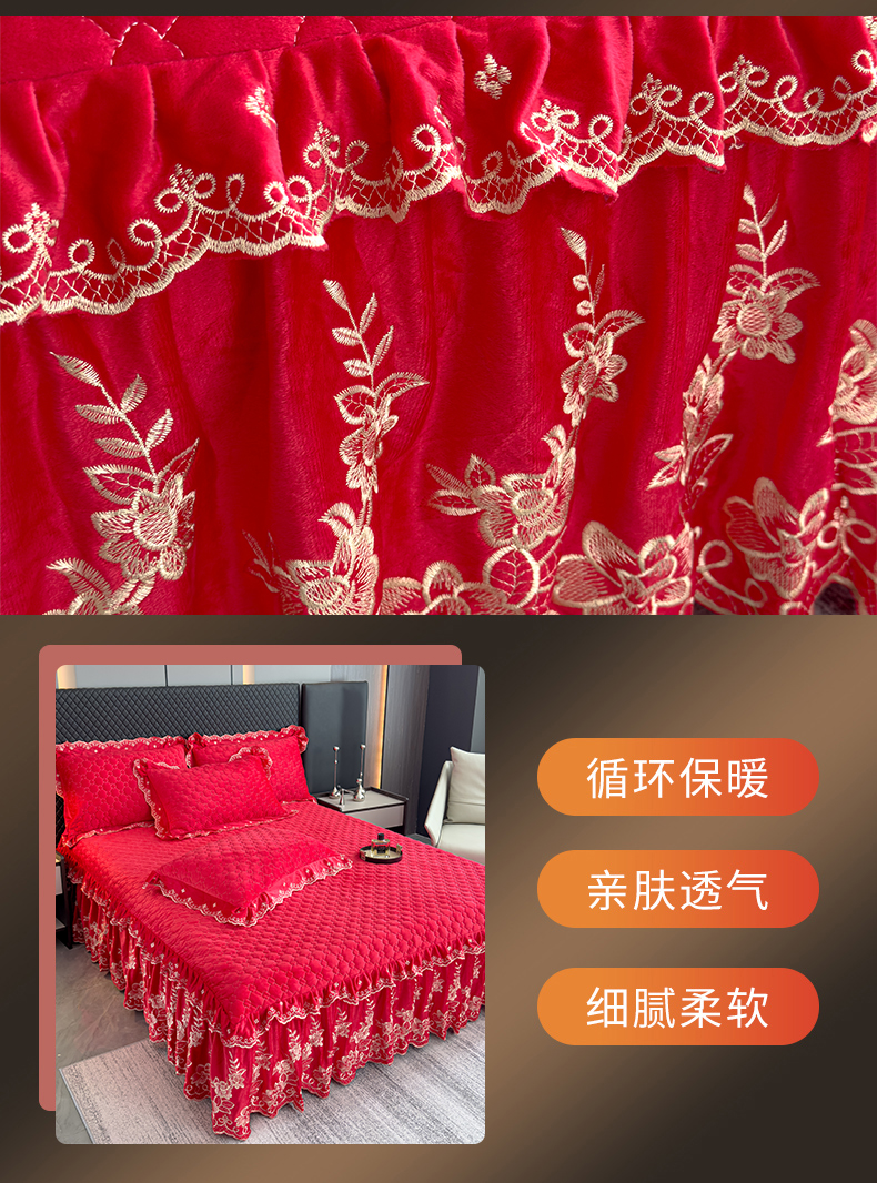花香四季家纺 2025新款保暖绒绣花宝宝绒床裙系列 喜庆红