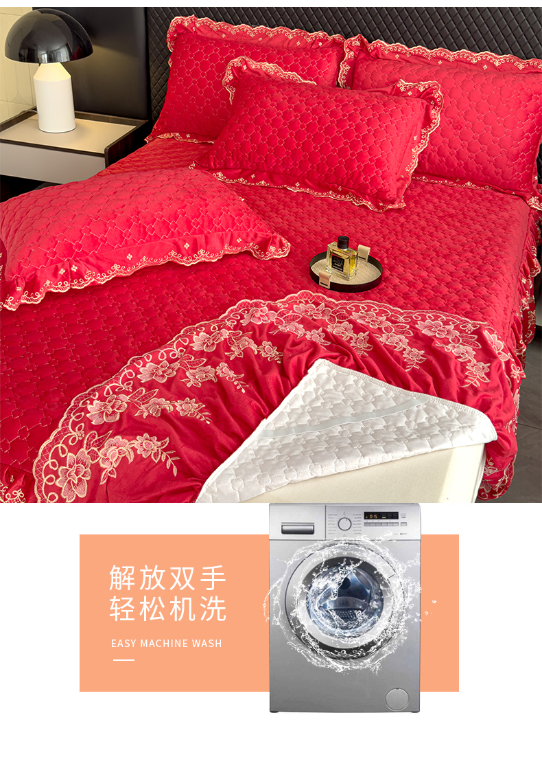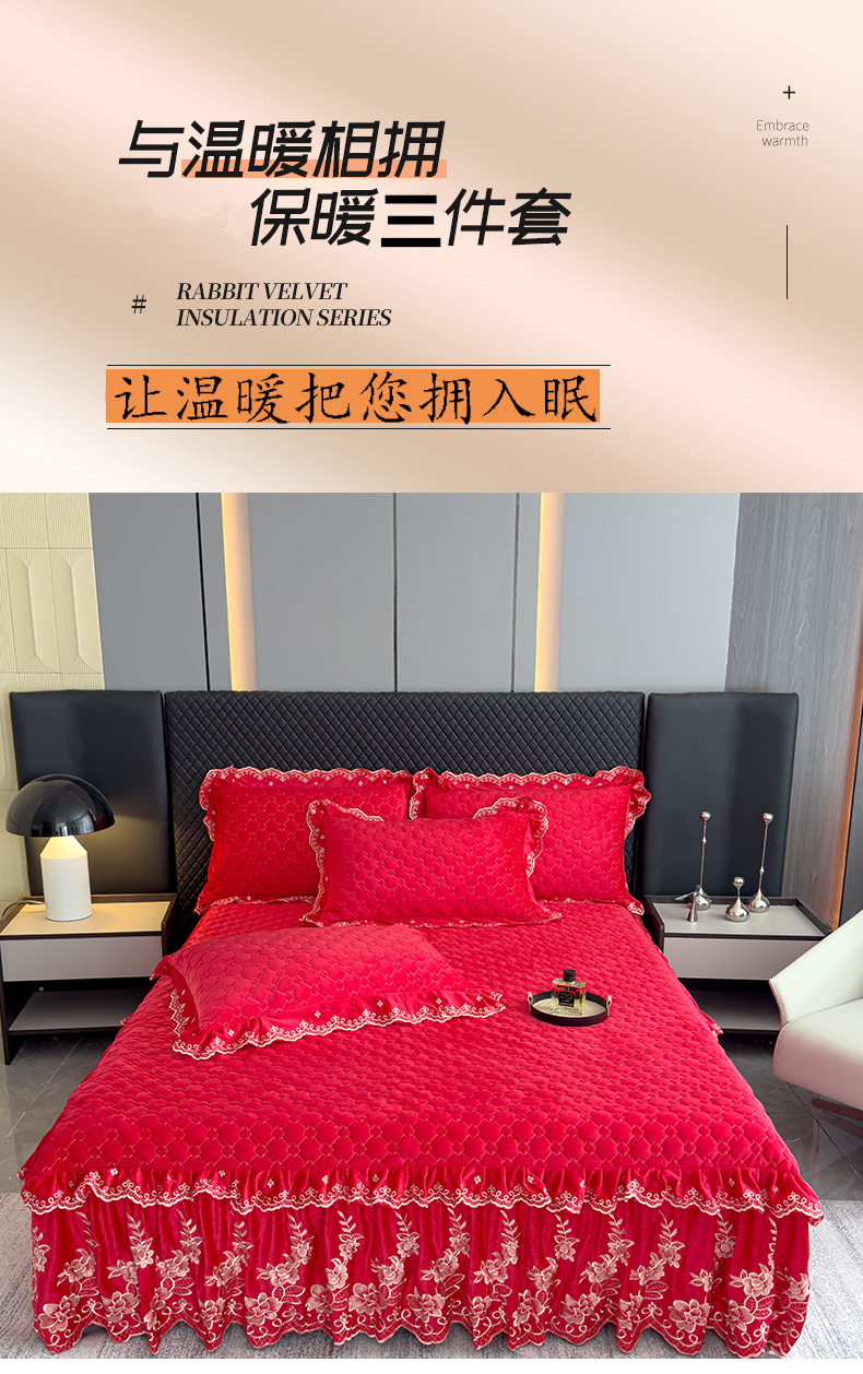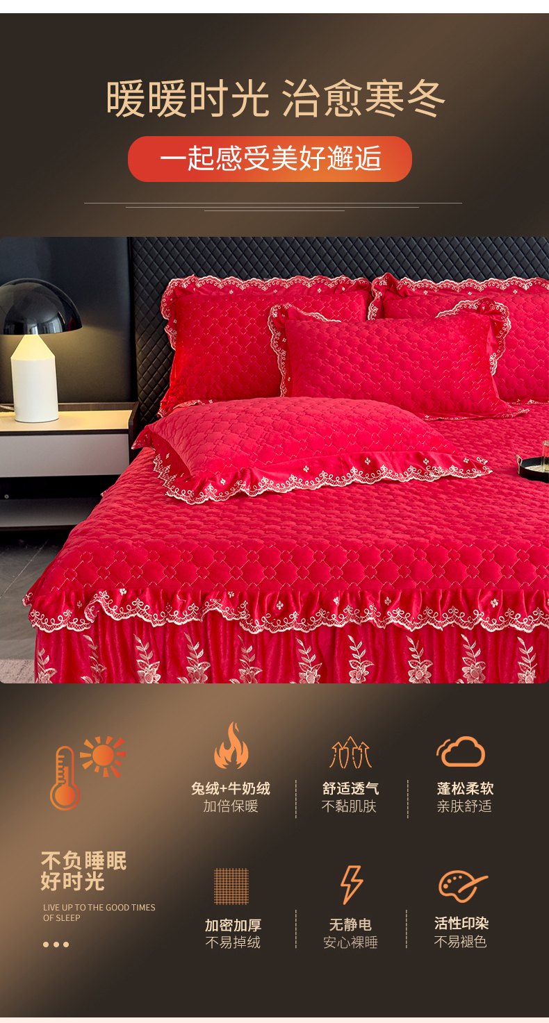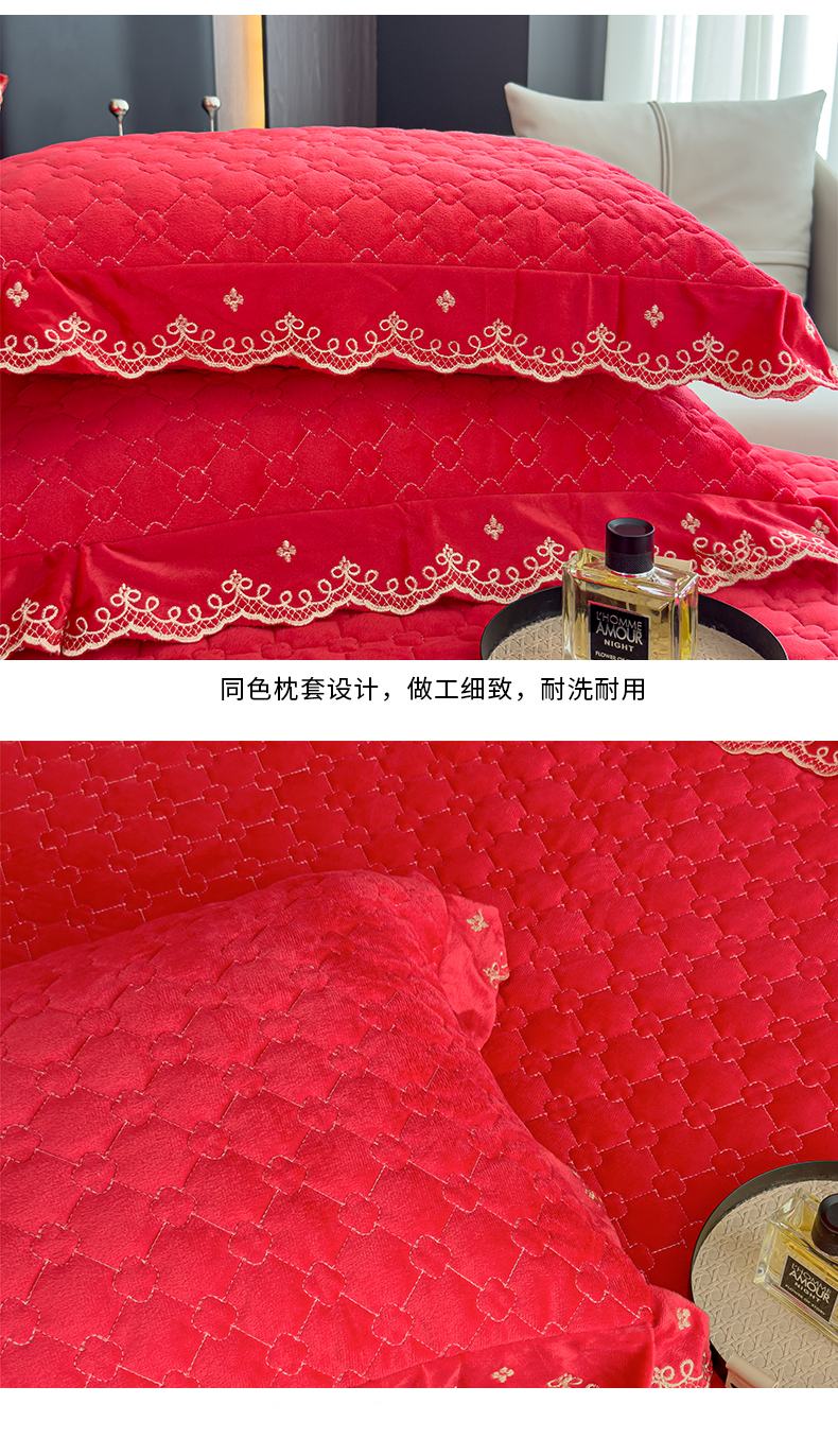 花香四季家纺 2025新款保暖绒绣花宝宝绒床裙系列 喜庆红