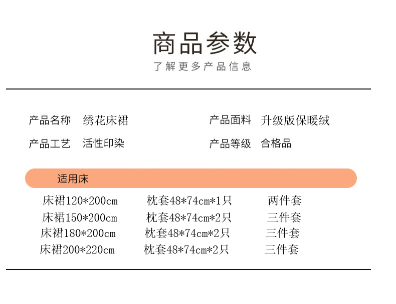 180*220cm床裙+枕套2只