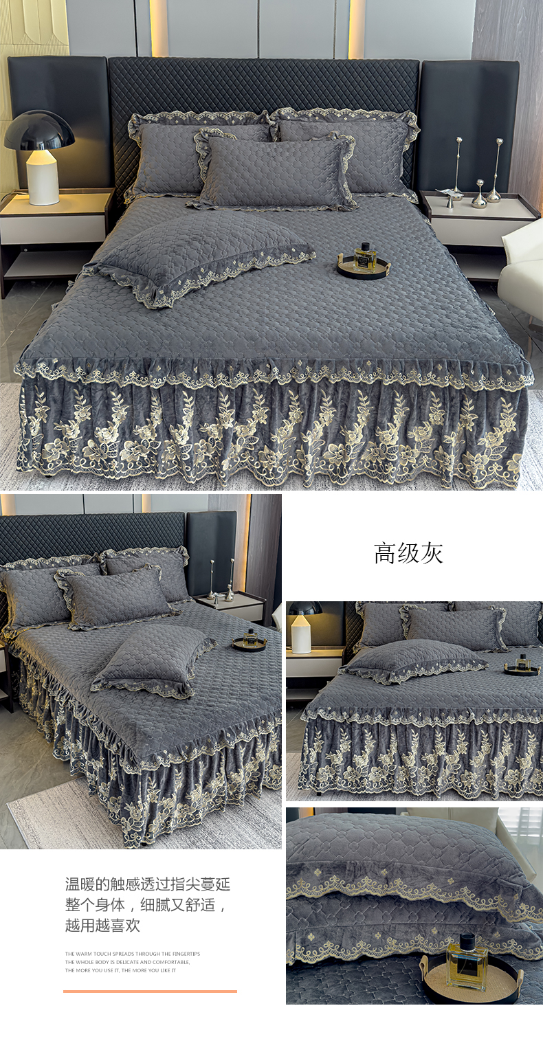 (总)花香四季家纺 2025新款牛奶绒夹棉床裙款四件套-柏林小姐,柏林小姐-白,柏林小姐-粉
