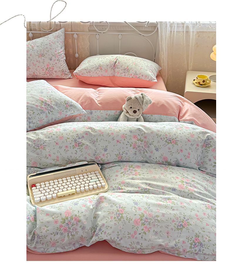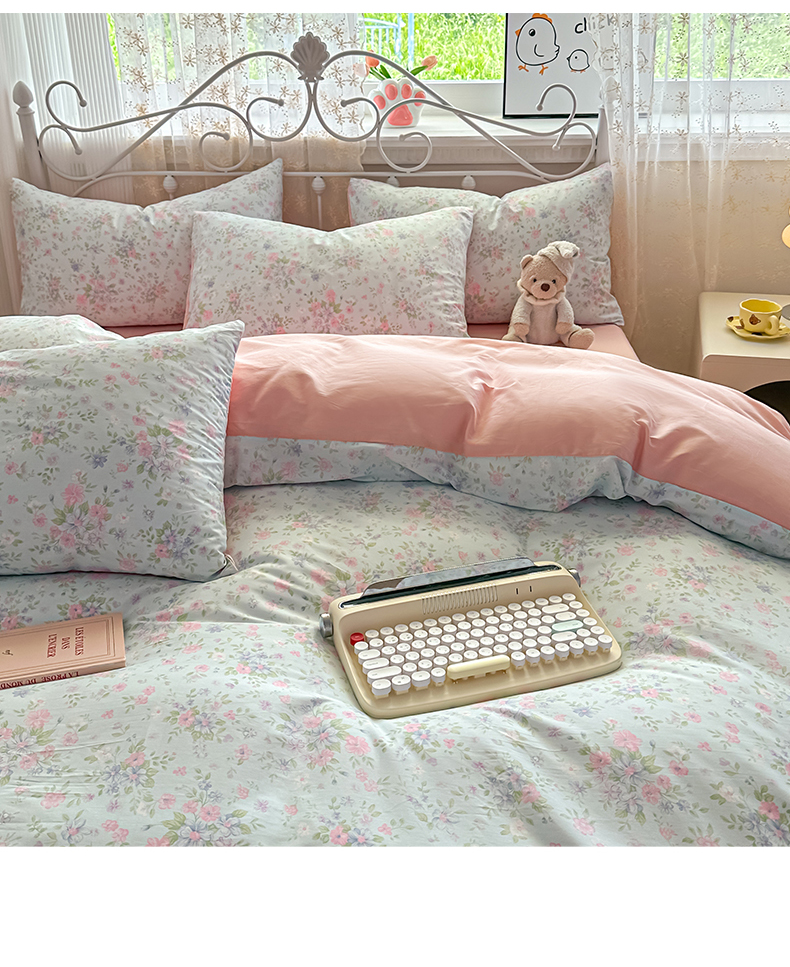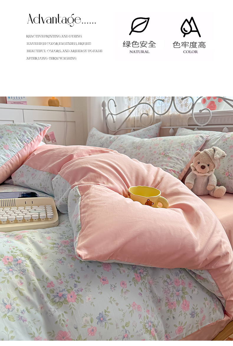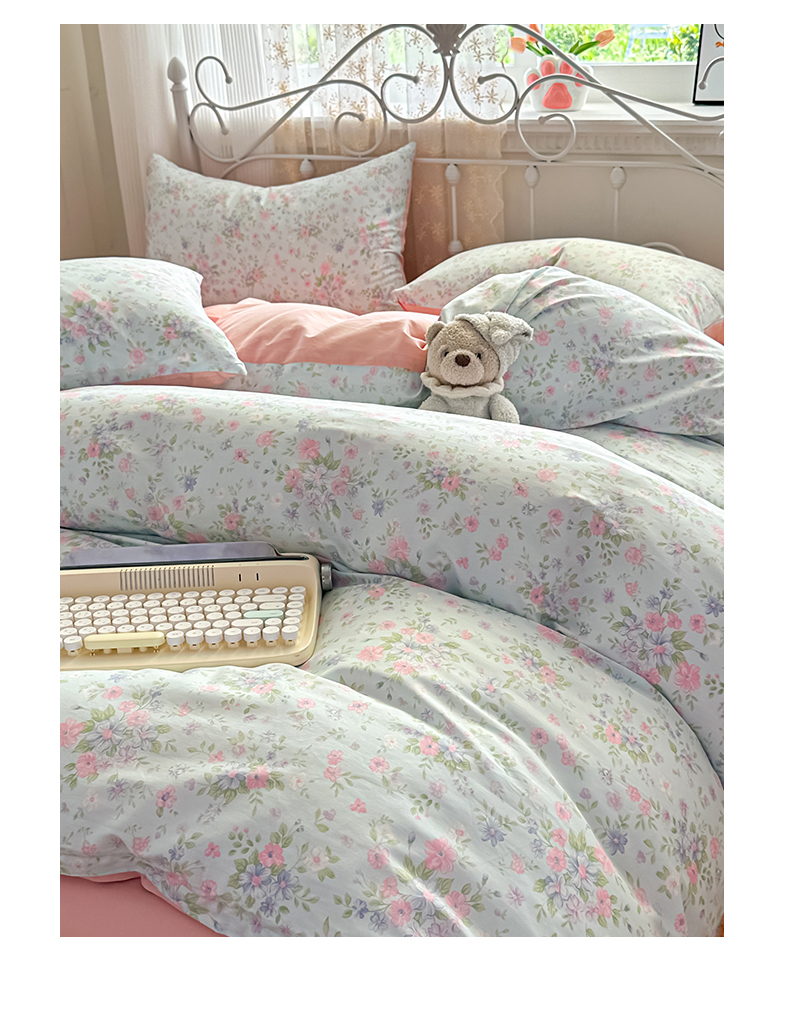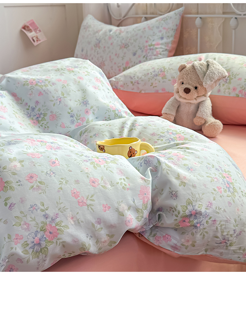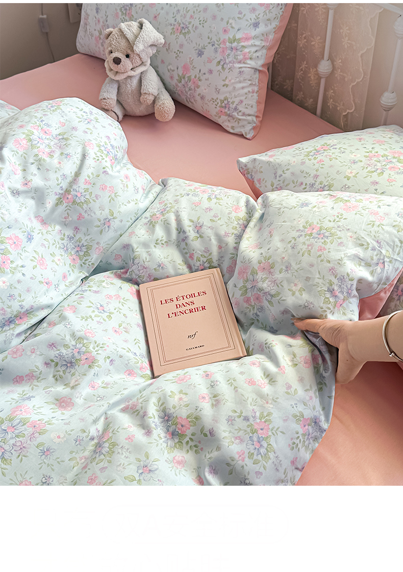 恒爱家纺 2025新款全棉花卉四件套 蓝星花