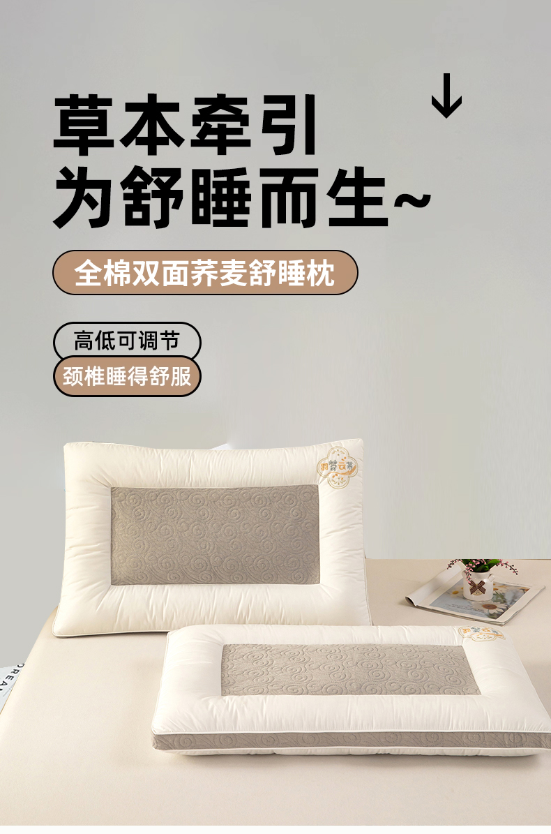 (总)九州枕芯 2025新款全棉草本荞麦枕枕头枕芯,草本荞麦枕