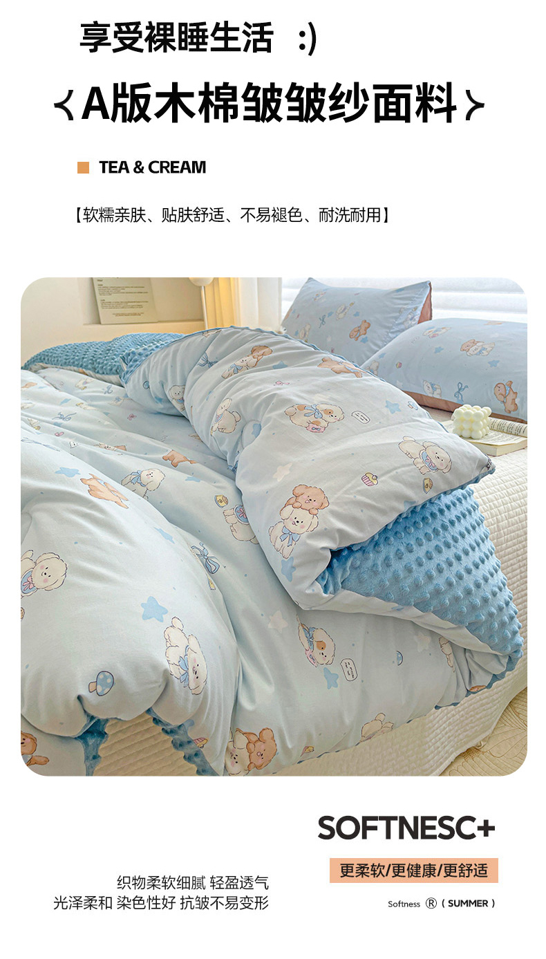 商品名称:(总)丫丫家纺 2025新款云感木棉皱皱纱被子豆豆绒大豆被冬被被芯春秋豆豆被