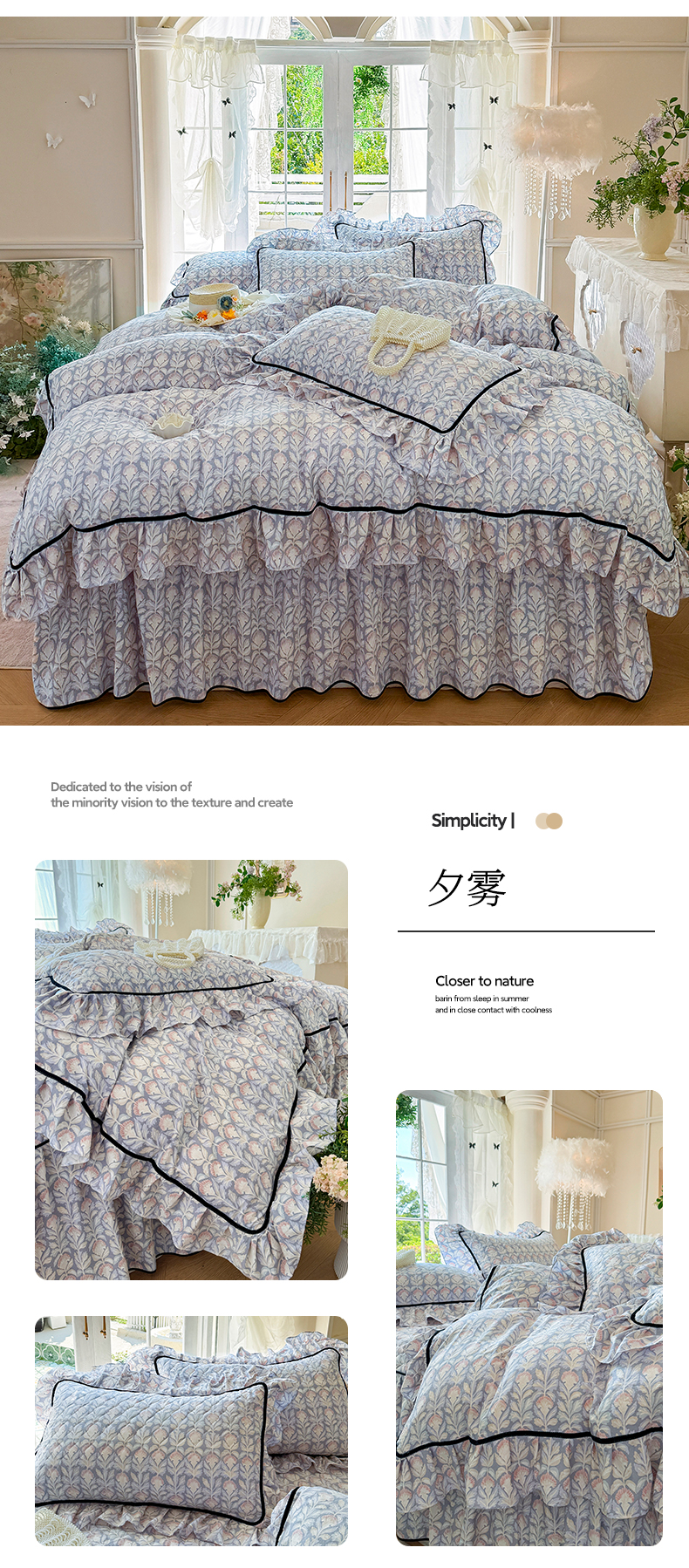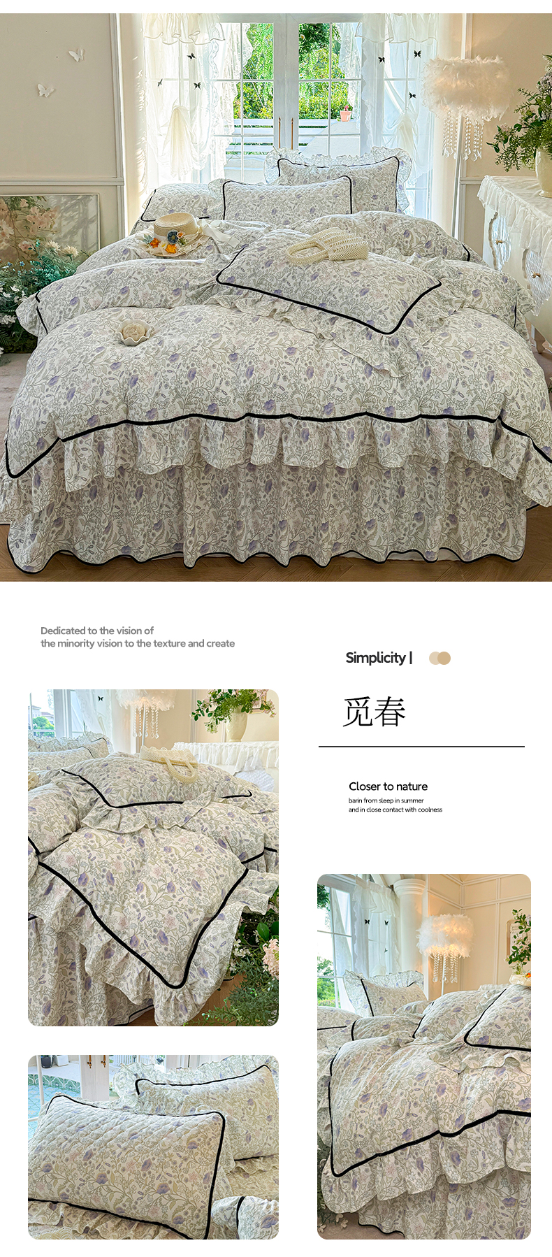 商品名称:(总)宜凡家纺 2025新款A类水洗珍珠棉夹棉床裙四件套