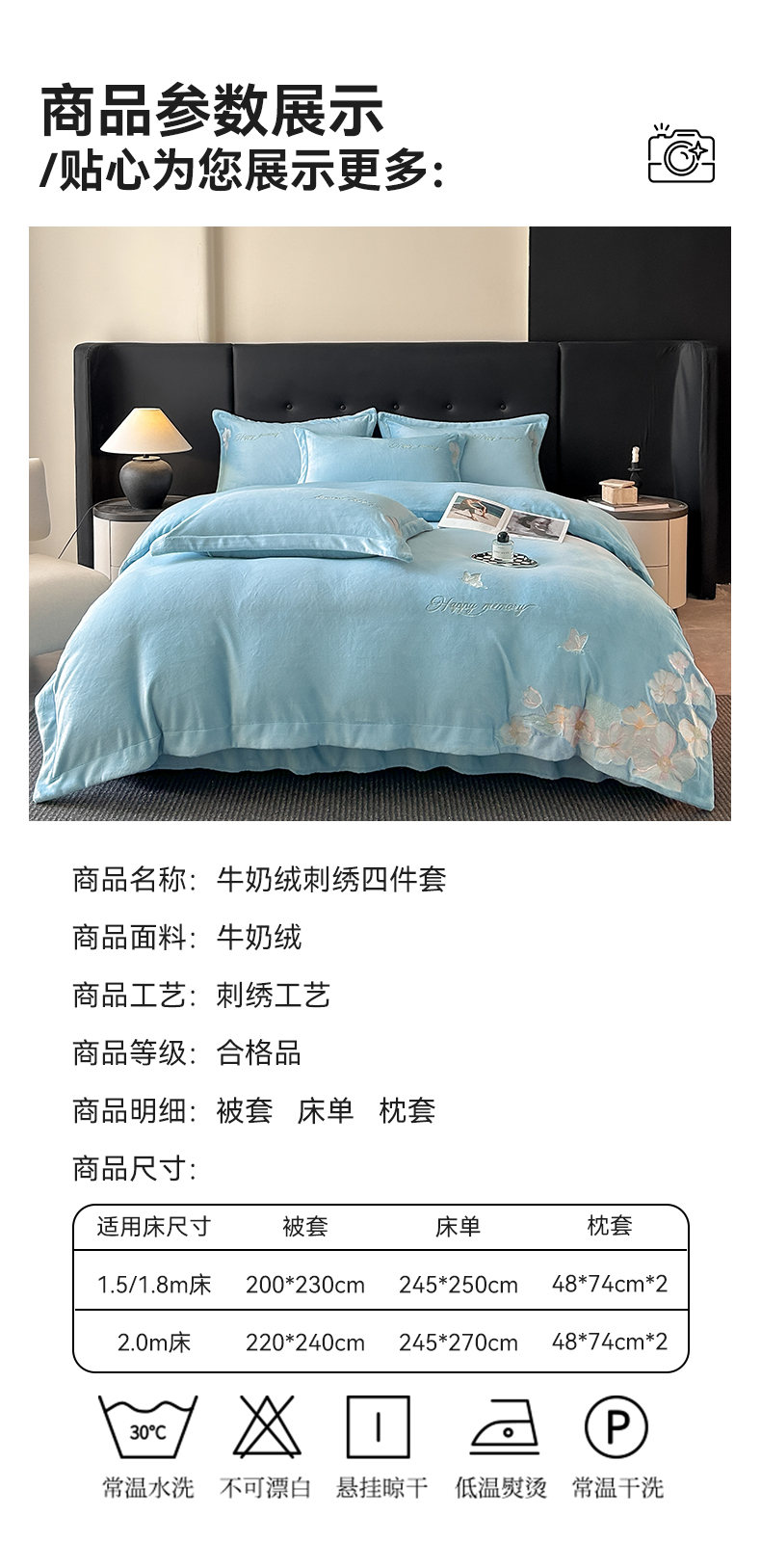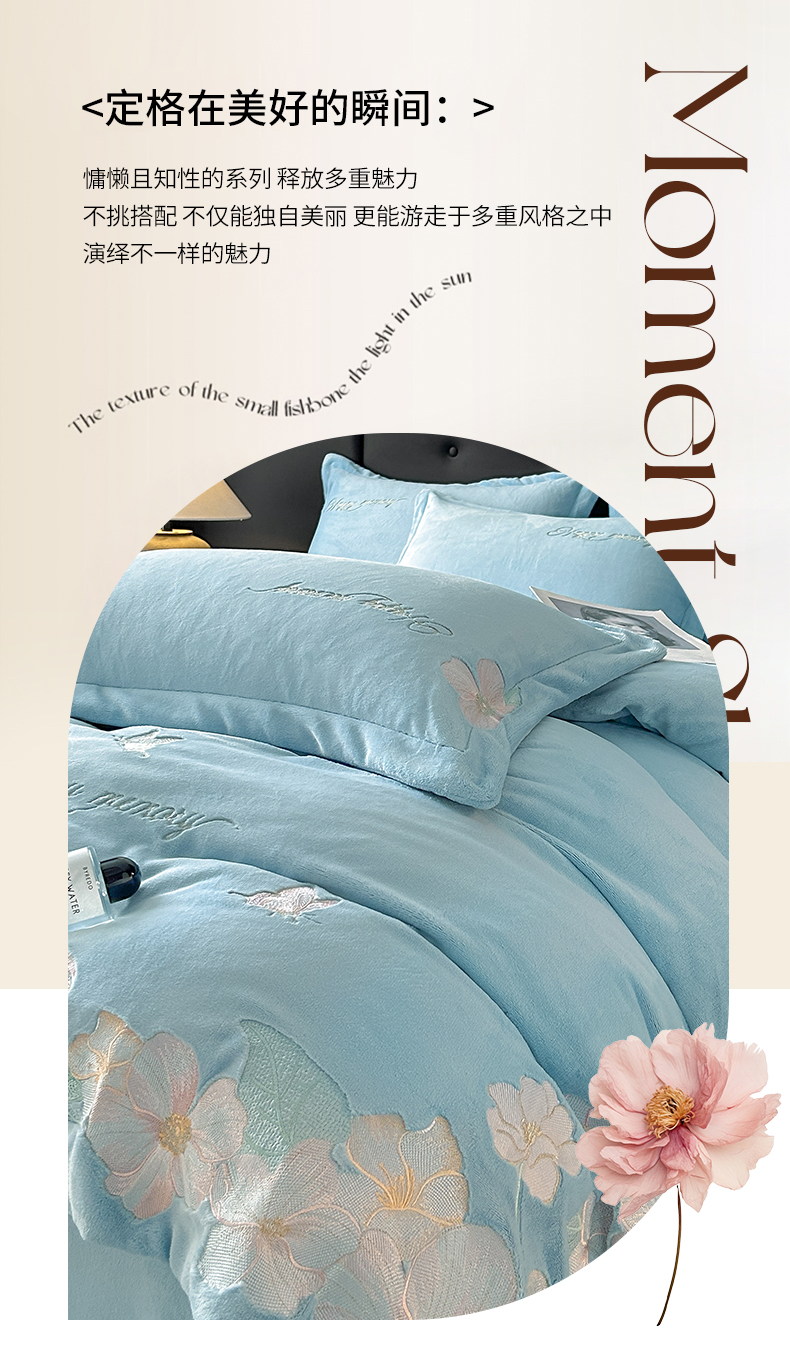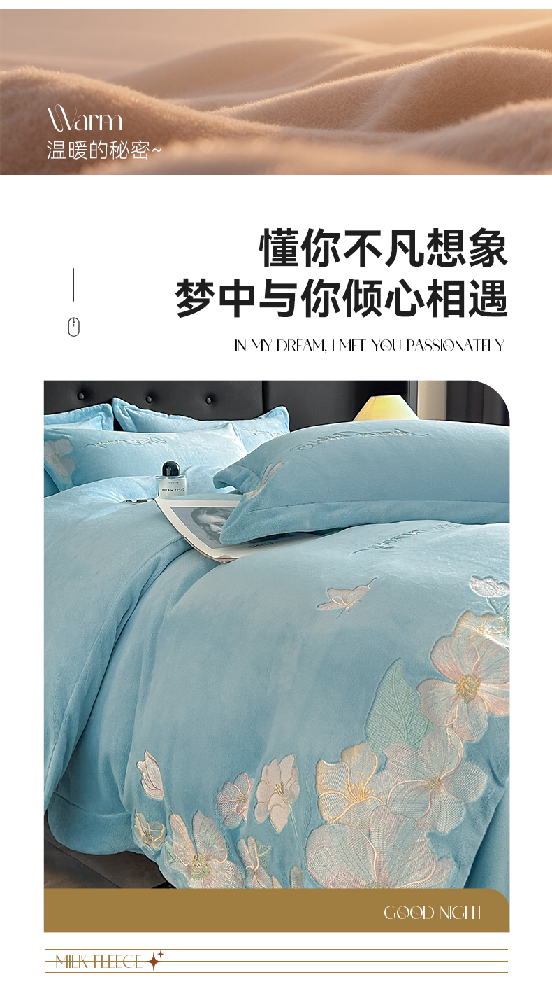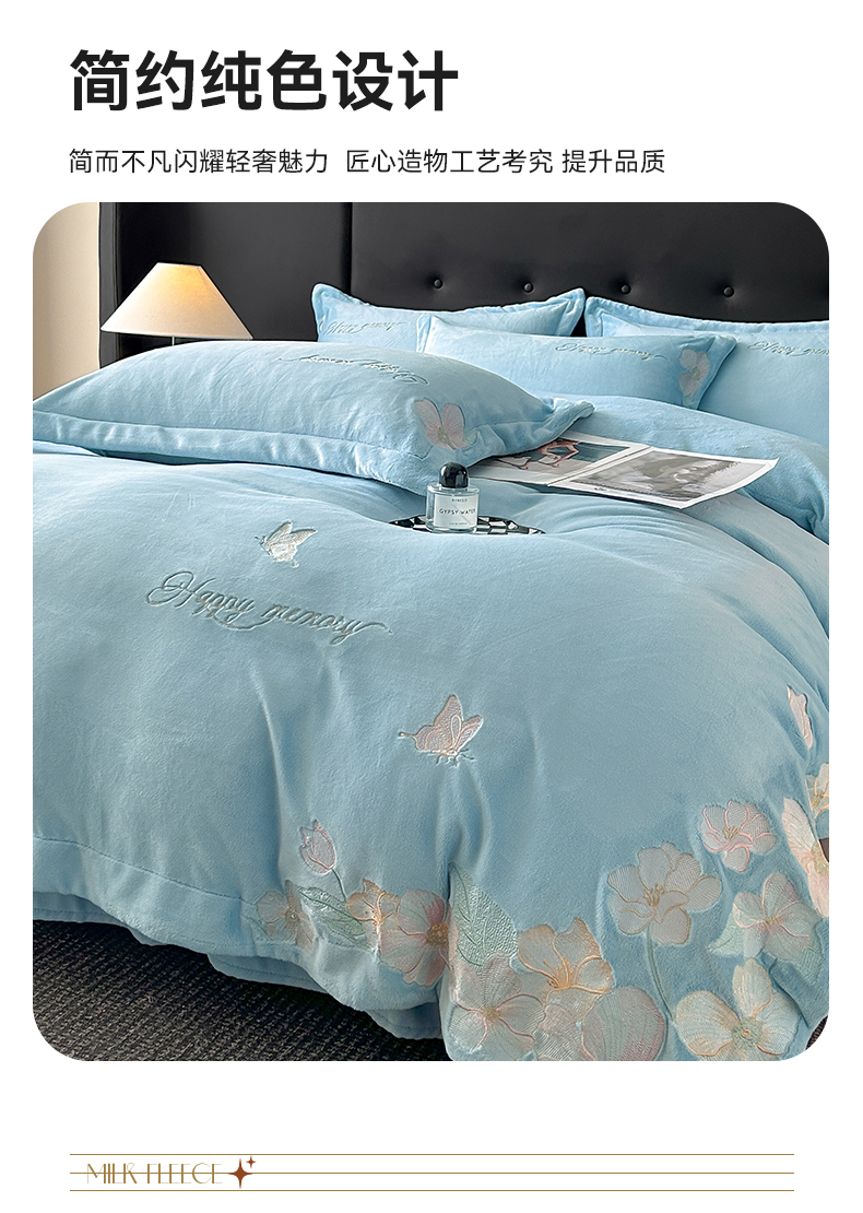 商品名称:恋绒家纺 2025新款牛奶绒刺绣四件套-花舞 花舞-绅士蓝