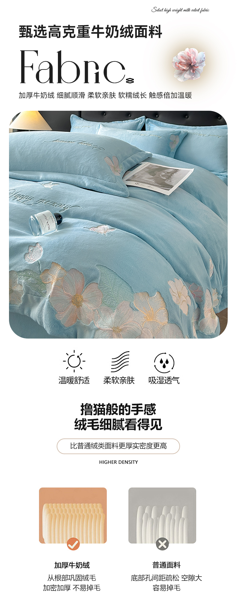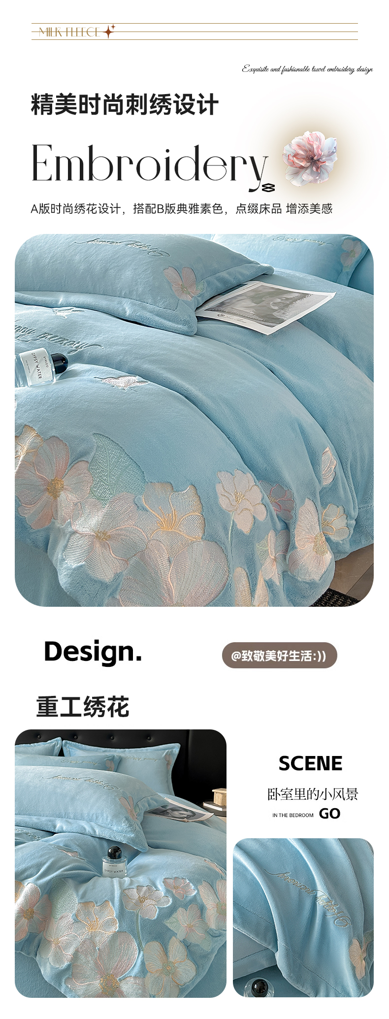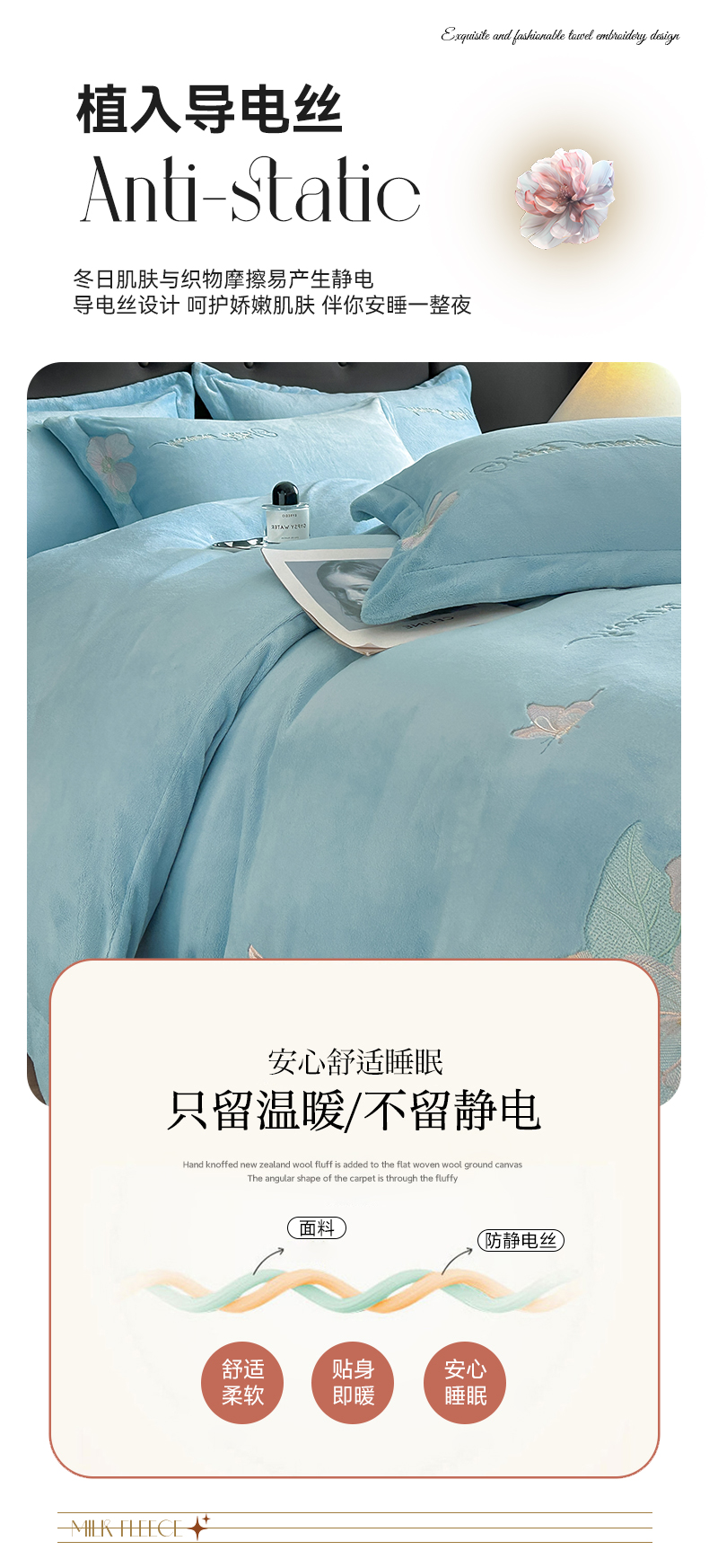 商品名称:恋绒家纺 2025新款牛奶绒刺绣四件套-花舞 花舞-绅士蓝