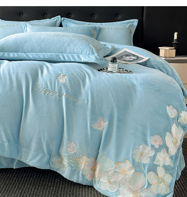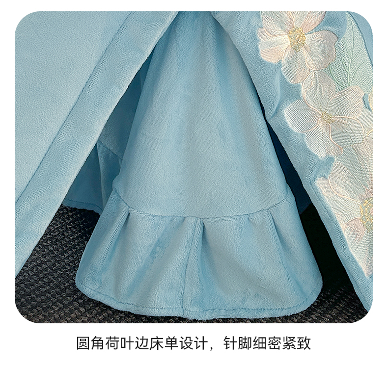恋绒家纺 2025新款牛奶绒刺绣四件套-花舞 花舞-绅士蓝