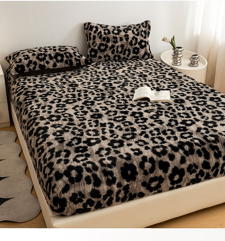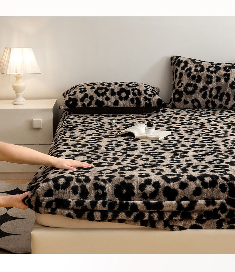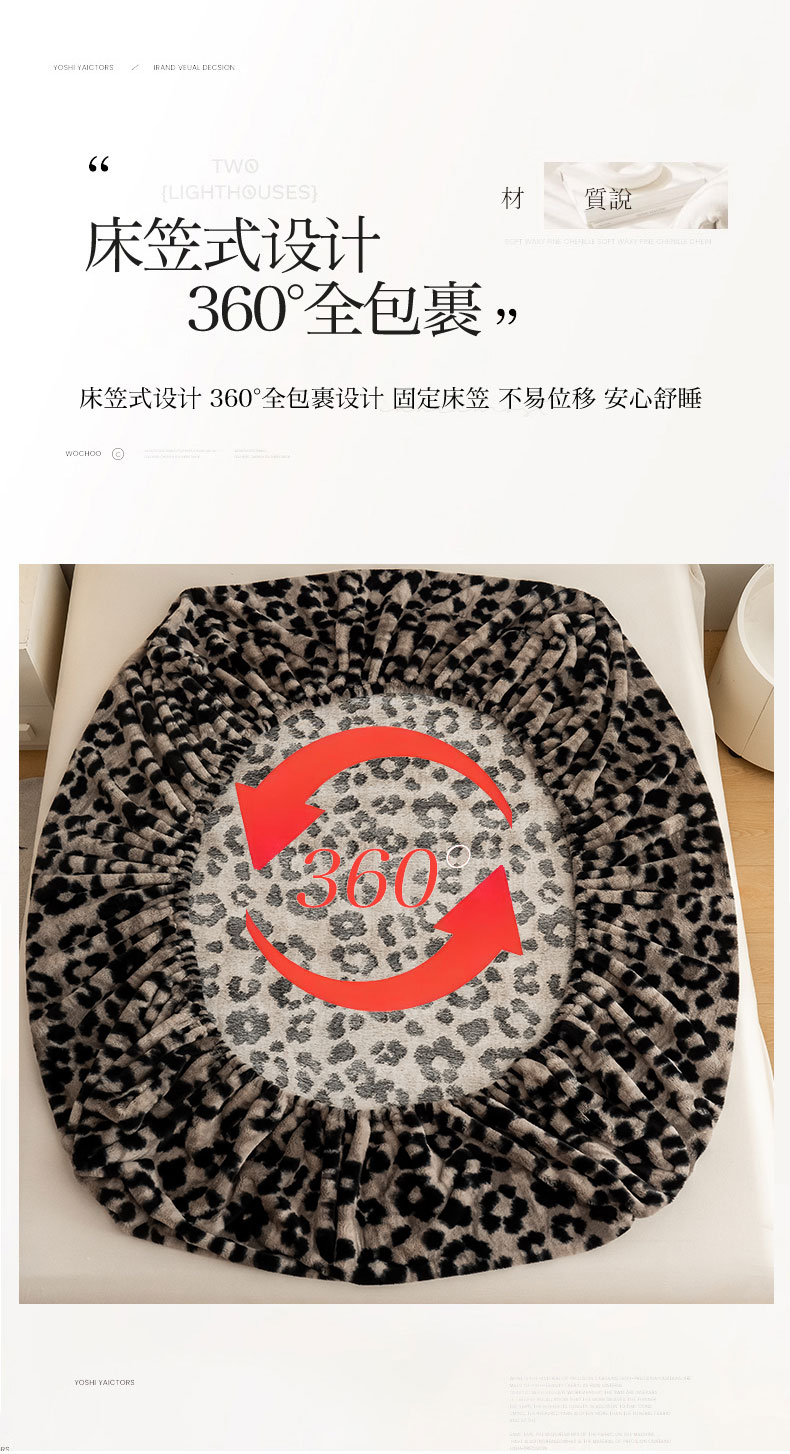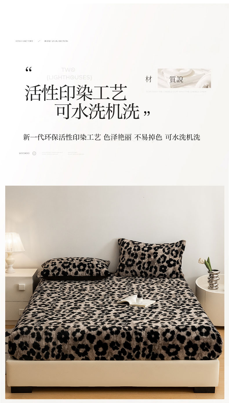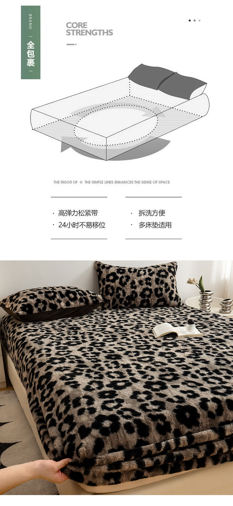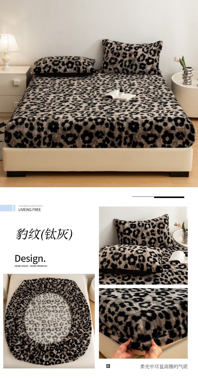 • 91家纺网 家纺一手货源 找家纺 九花鹿 2025新款A类加厚兔毛绒单床笠床褥子床护垫 豹纹(钛灰)